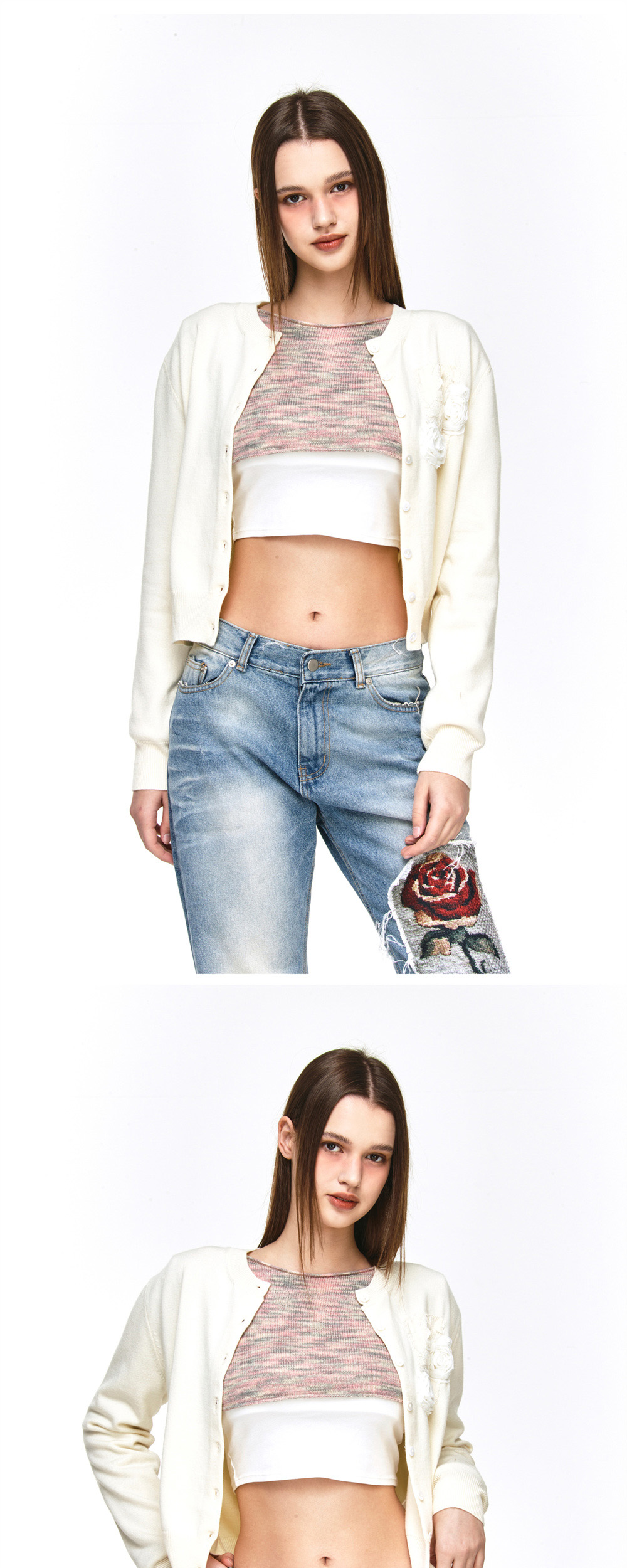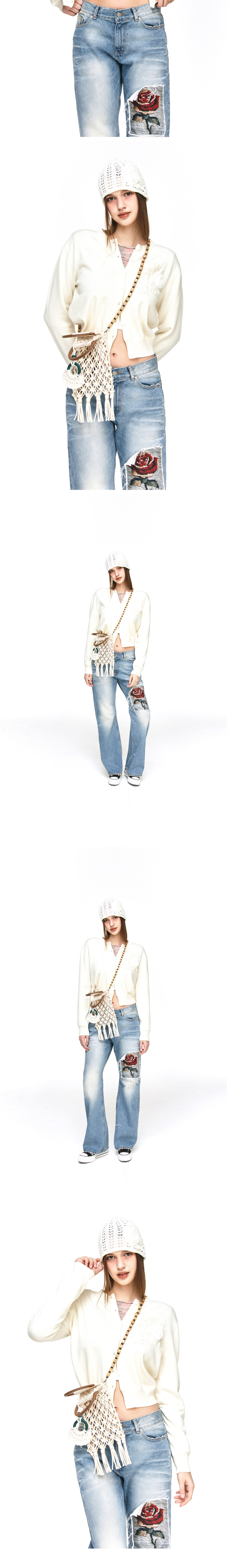 더그레이티스트 크롭 장미 패치 가디건 아이보리