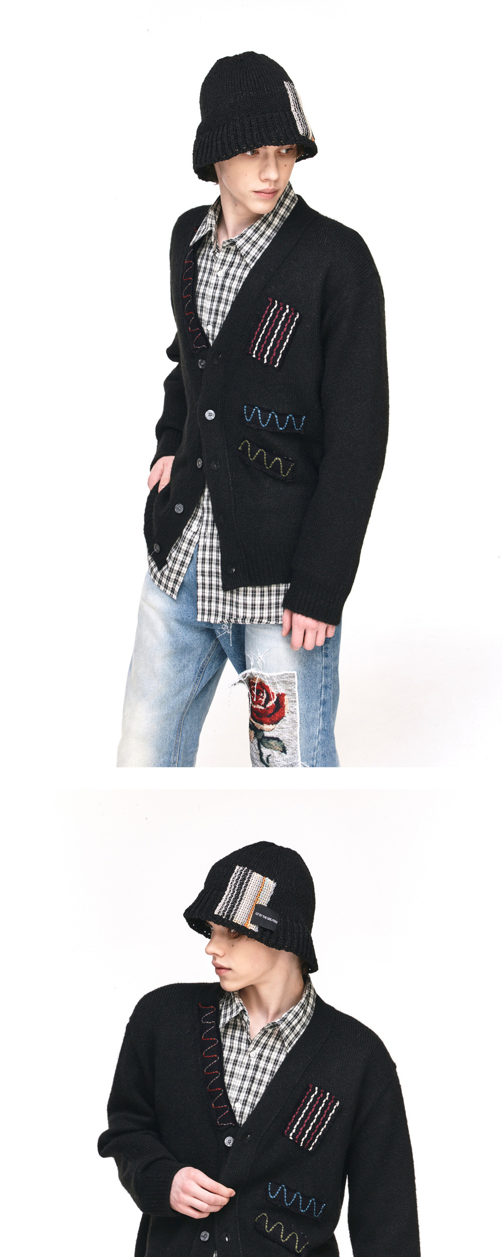 더그레이티스트 패치워크 니트 가디건 블랙