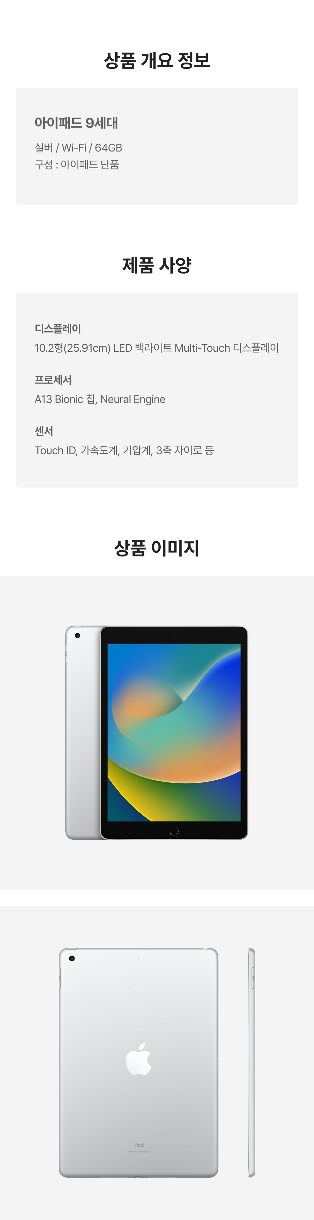 [S등급] 리퍼비시 아이패드 9세대 wifi A13 Bionic 64기가 실버