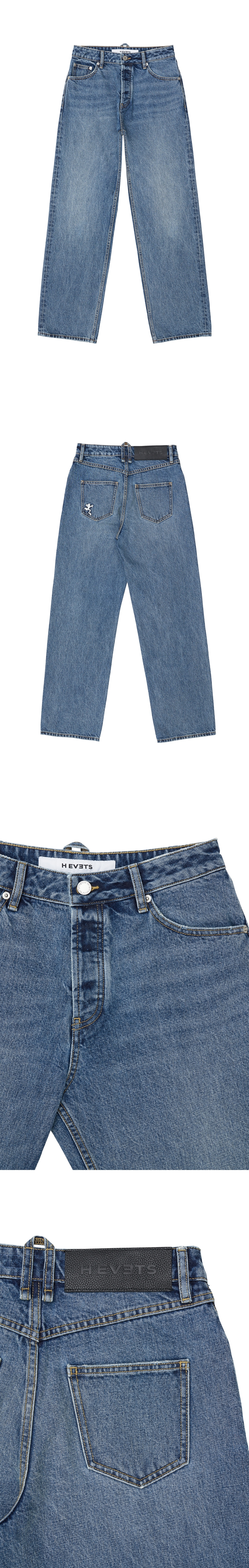 HEVETS의 기본적인 레귤러핏의 팬츠입니다. 49년 경력의 데님 전문가들의 노하우로 다리가 길어보이는 무릎 포인트와 힙업 클러치 포인트가 특징입니다.