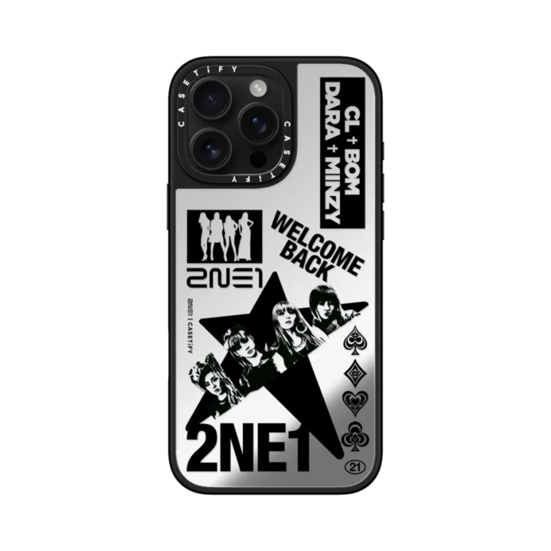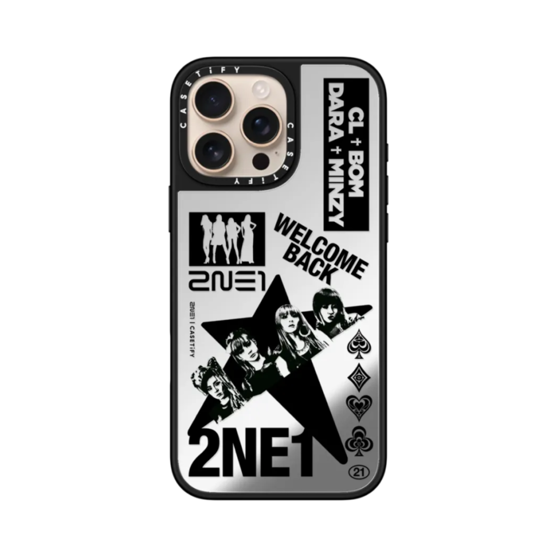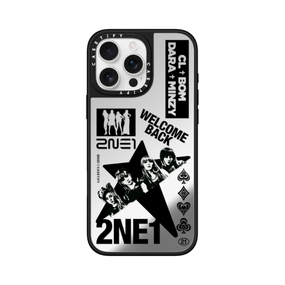 Casetify x 2NE1 iPhone Sticker Magsafe Mirror Case Silver Mirror Black Bumper