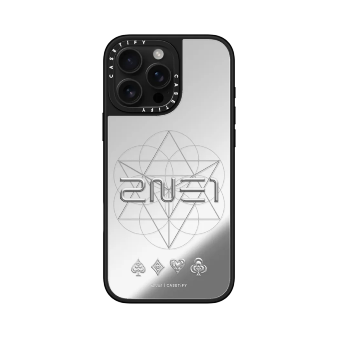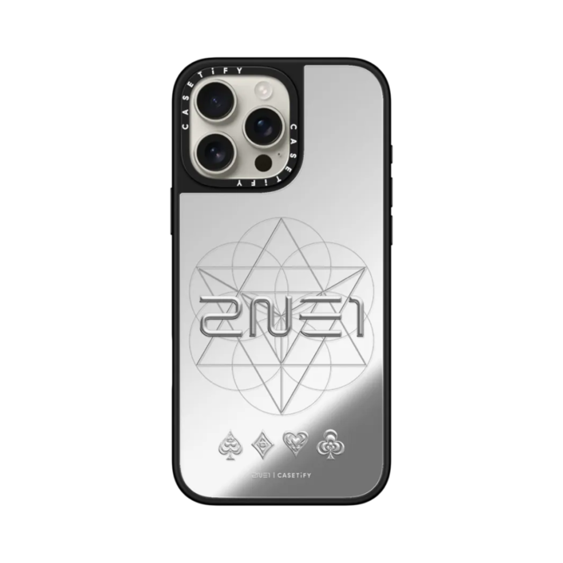 Casetify x 2NE1 iPhone Logo Magsafe Mirror Case Silver Mirror Black Bumper