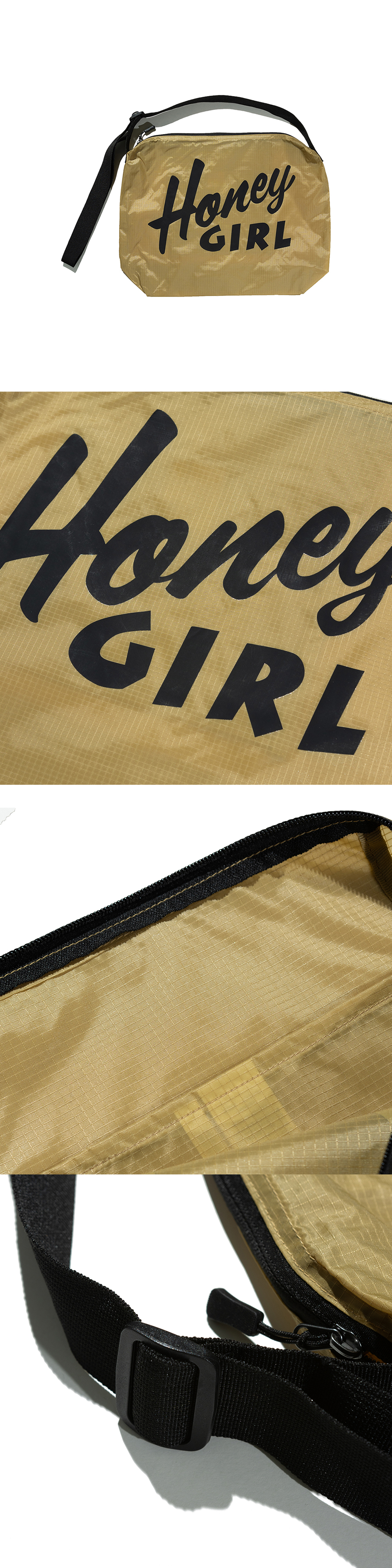 HONEY SCOOP HOUSE HONEY GIRL RIPSTOP CROSS BAG SAND 100% POLYESTER FRONT GRAPHIC ZIP COMPARTMENT ADJUSTABLE SHOULDER STRAP