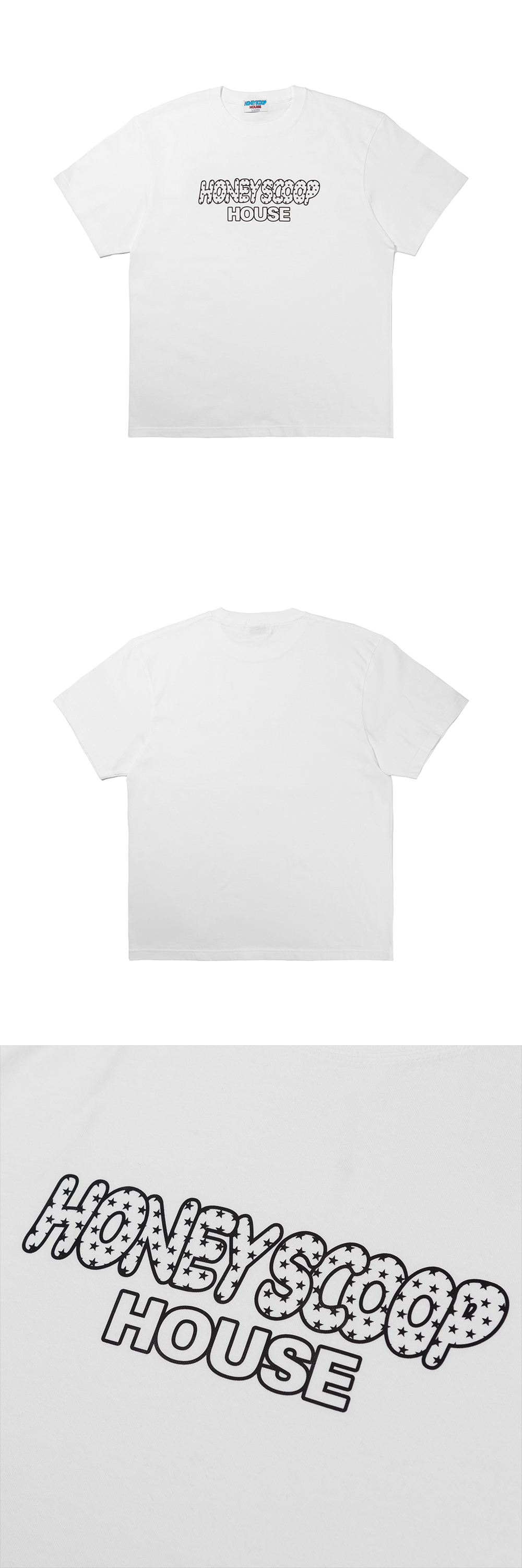 HONEY SCOOP HOUSE MONO FLAG LOGO TEE WHITE 100% COTTON SHORT SLEEVE GRAPHIC TEE