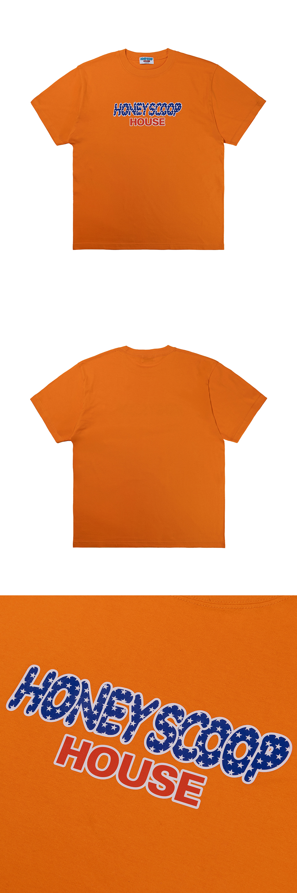 HONEY SCOOP HOUSE FLAG LOGO TEE ORANGE 100% COTTON SHORT SLEEVE GRAPHIC TEE