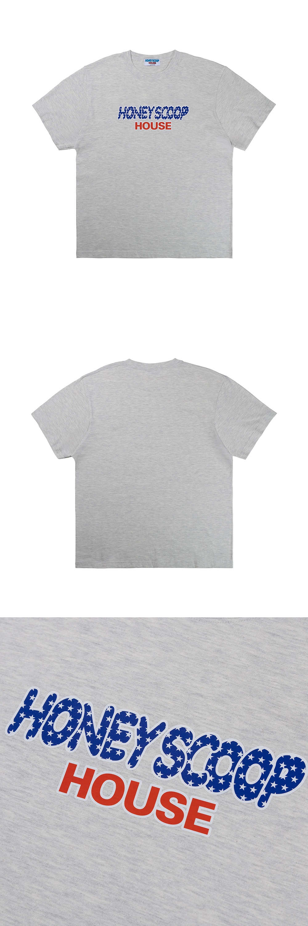 HONEY SCOOP HOUSE FLAG LOGO TEE OATMEAL 100% COTTON SHORT SLEEVE GRAPHIC TEE