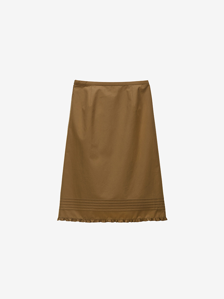 깨끗하고 퓨어한 텍스처의 원단의 스커트로 디자인하였고 소녀와 여성의 경계가 공존하는 매력적인 스커트입니다. 러플 디테일과 미디 기장까지 오는 에이라인 스커트로 날씬하고 이지한 스커트입니다. 워크아웃 자켓과 믹스 매치 룩으로도 연출이 가능합니다. SIZE GUIDE S SIZE / 허리 72.4cm 힙 96.2cm 밑단 113cm 총기장 66cm M SIZE / 허리 77.5cm 힙 101cm 밑단 118cm 총기장 66.6cm 치수는 재는 위치에 따라 1-3cm 차이 생길 수 있습니다. 모델 착용 사이즈 : S SIZE