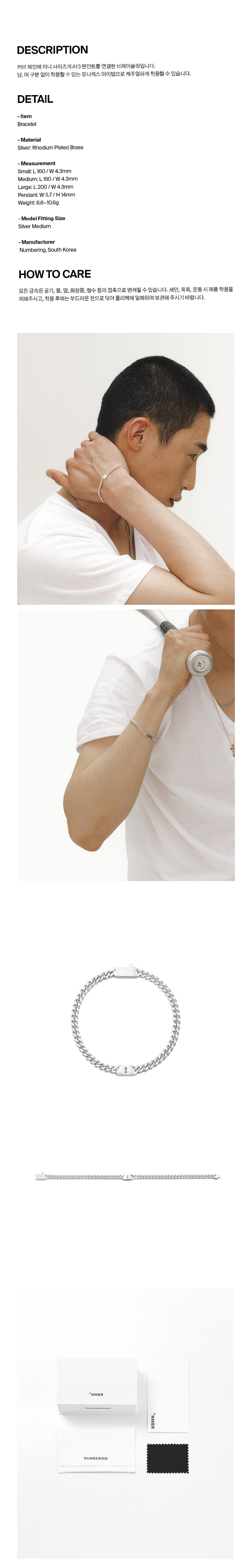 넘버링 #5945 커브 체인 브레이슬릿 위드 A13 로고 실버