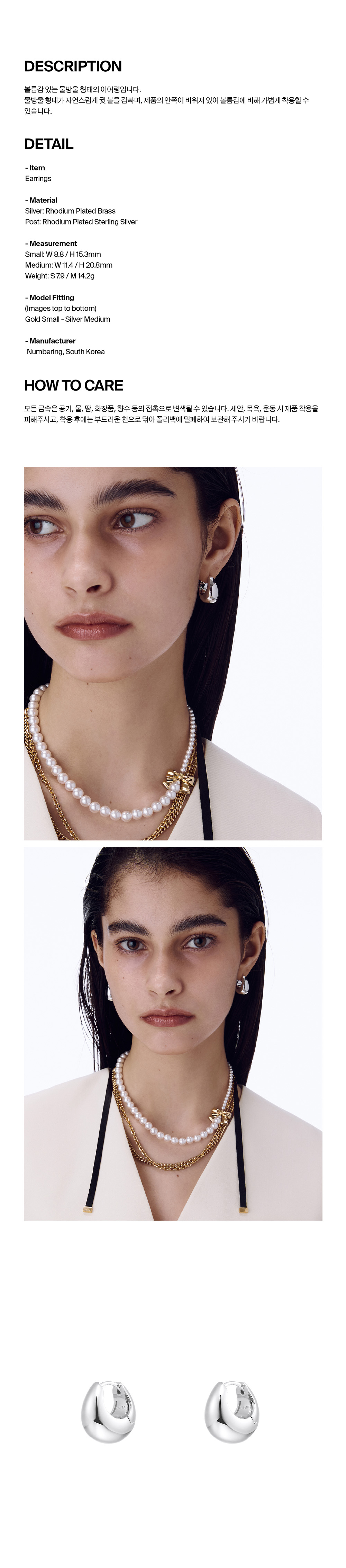넘버링 #5116 스몰 실버 볼륨 워터 드롭 이어링