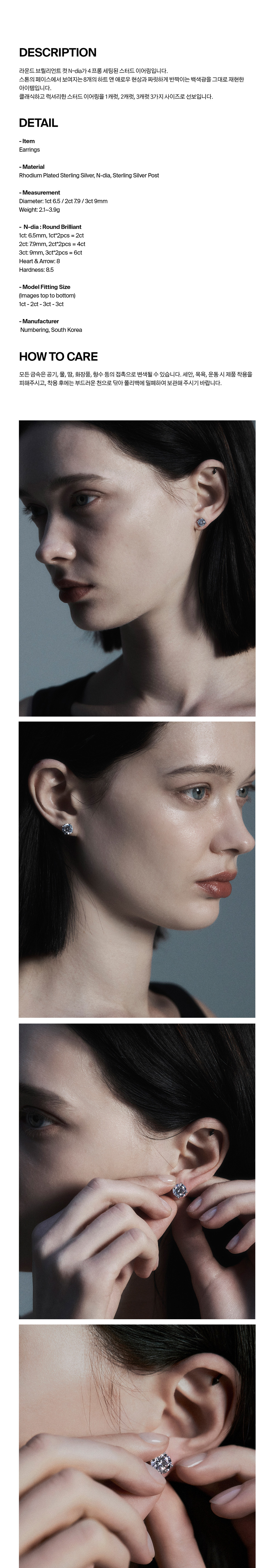 넘버링 #3311 (1CT) 라운드 브릴리언트 스터드 이어링 4 프롱