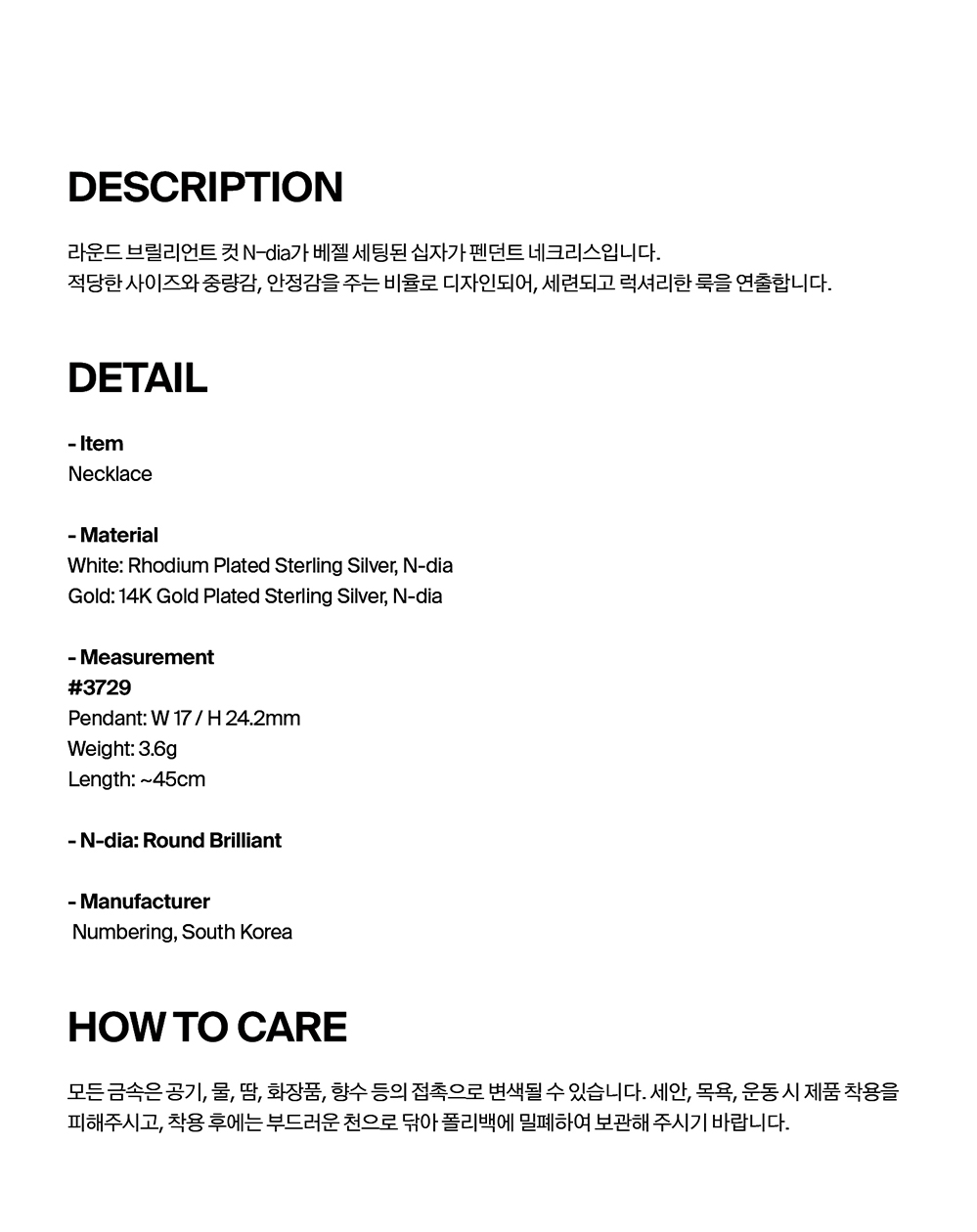 넘버링 #3729 라운드 브릴리언트 그라디언트 크로스 네크리스 골드