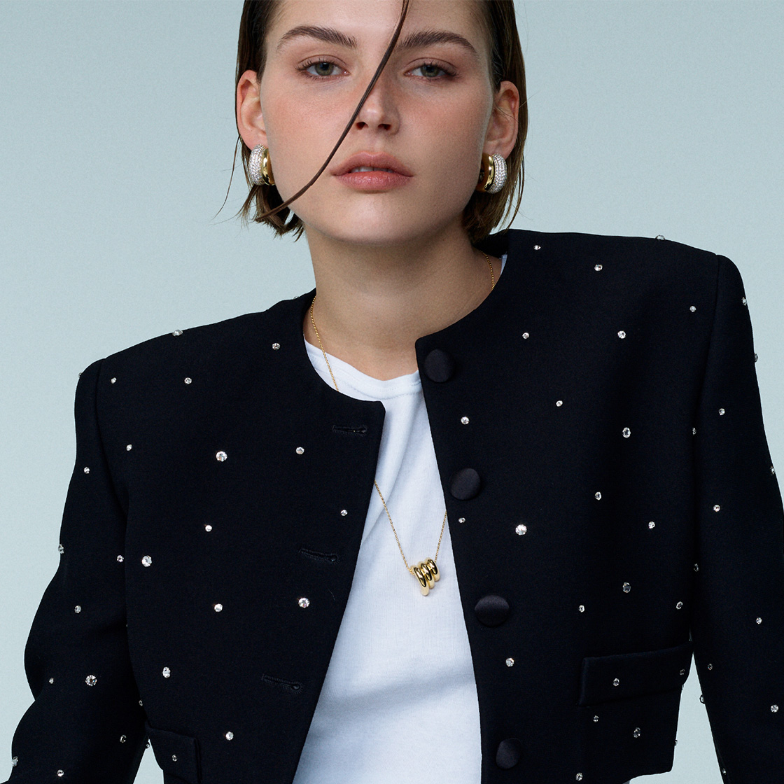 NUMBERING #5738 Gradient Triple Pipe Pendant Necklace Gold