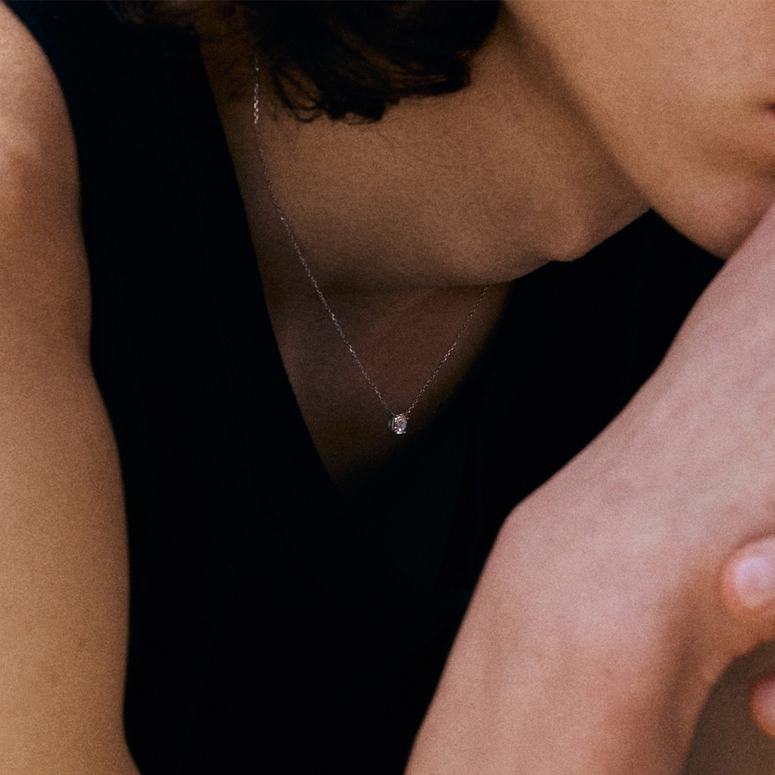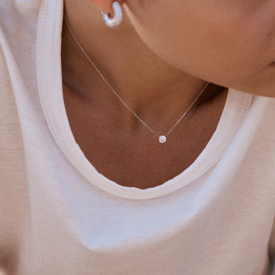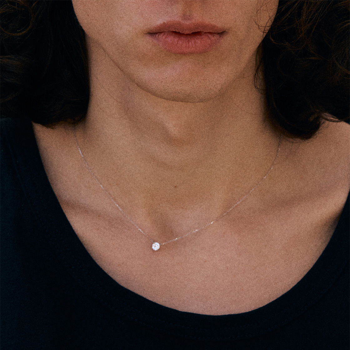 넘버링 #3713 (0.5CT) 라운드 브릴리언트 네크리스 4 프롱 화이트