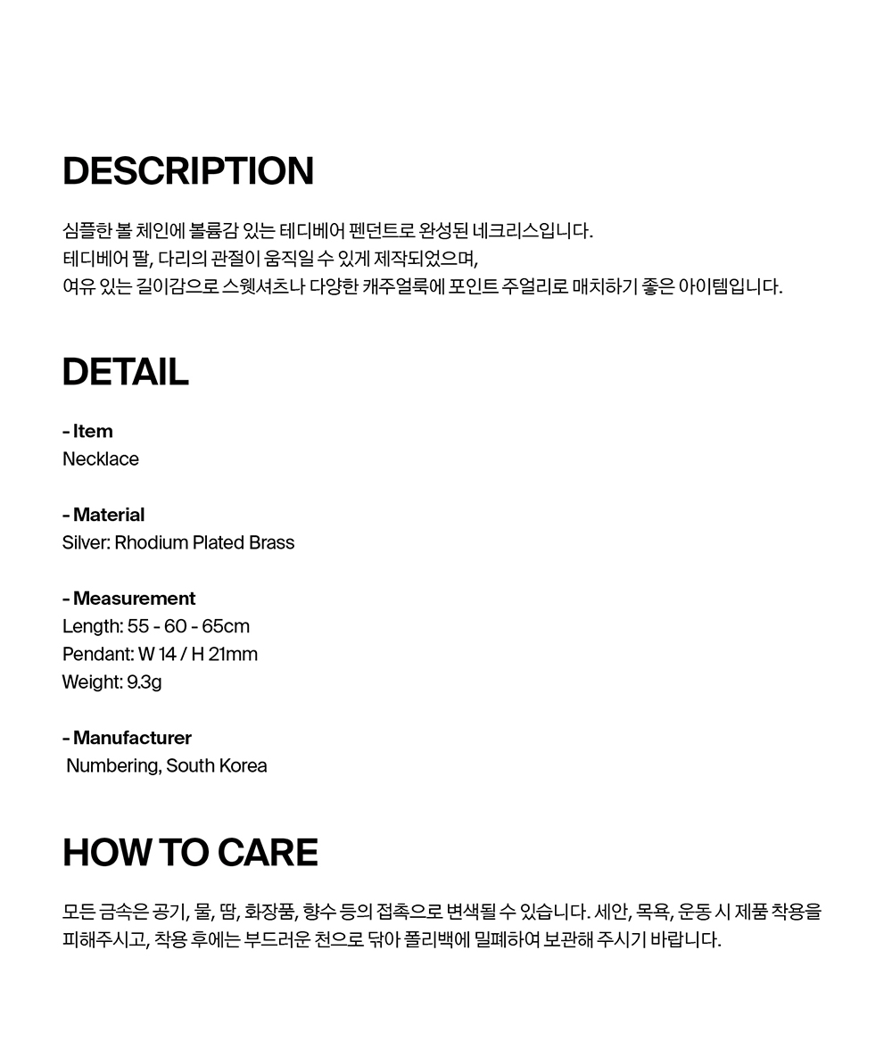 넘버링 #5841 테디 베어 네크리스 실버