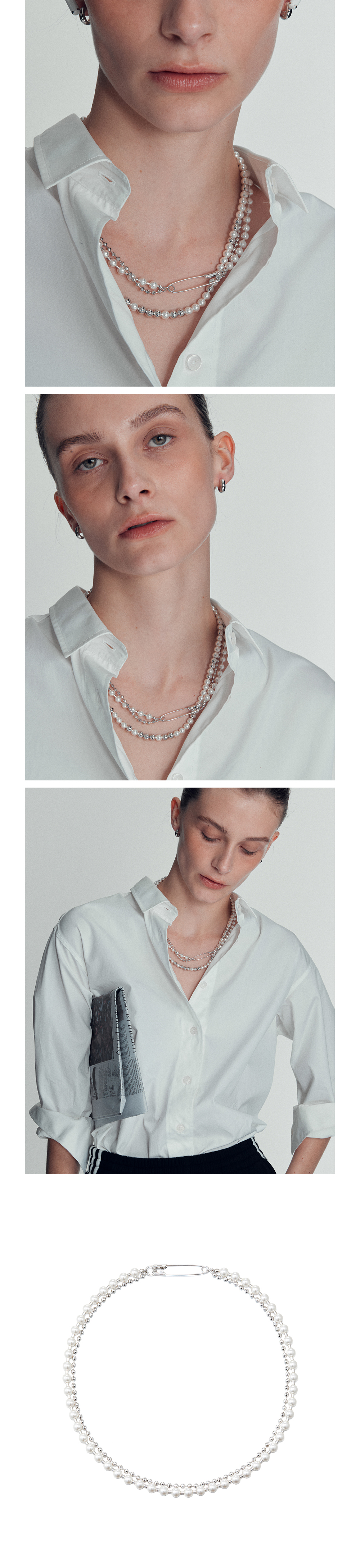 넘버링 #9709 볼 체인 위드 비즈 네크리스 화이트