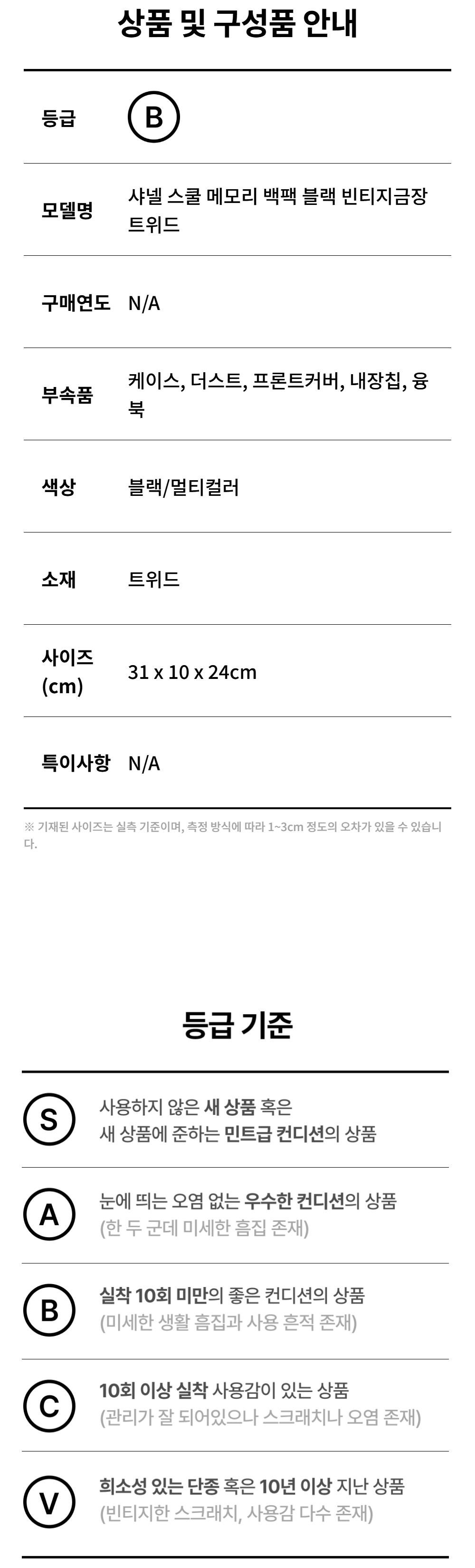 샤넬 스쿨 메모리 백팩 블랙 빈티지금장 트위드
