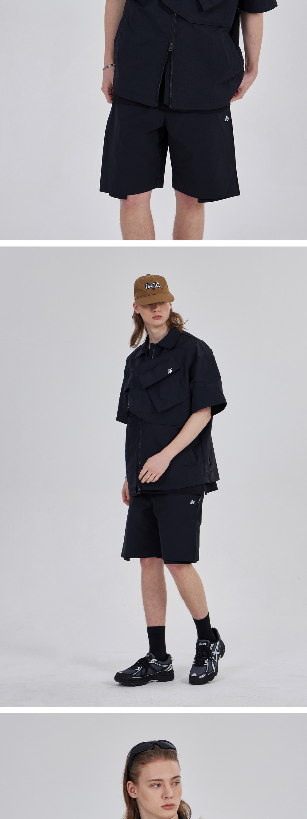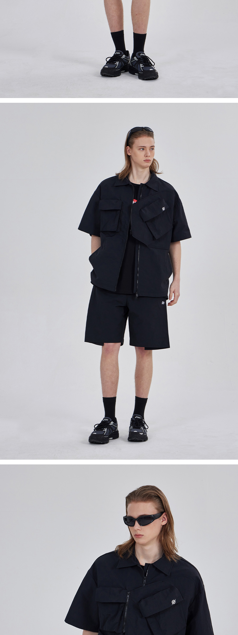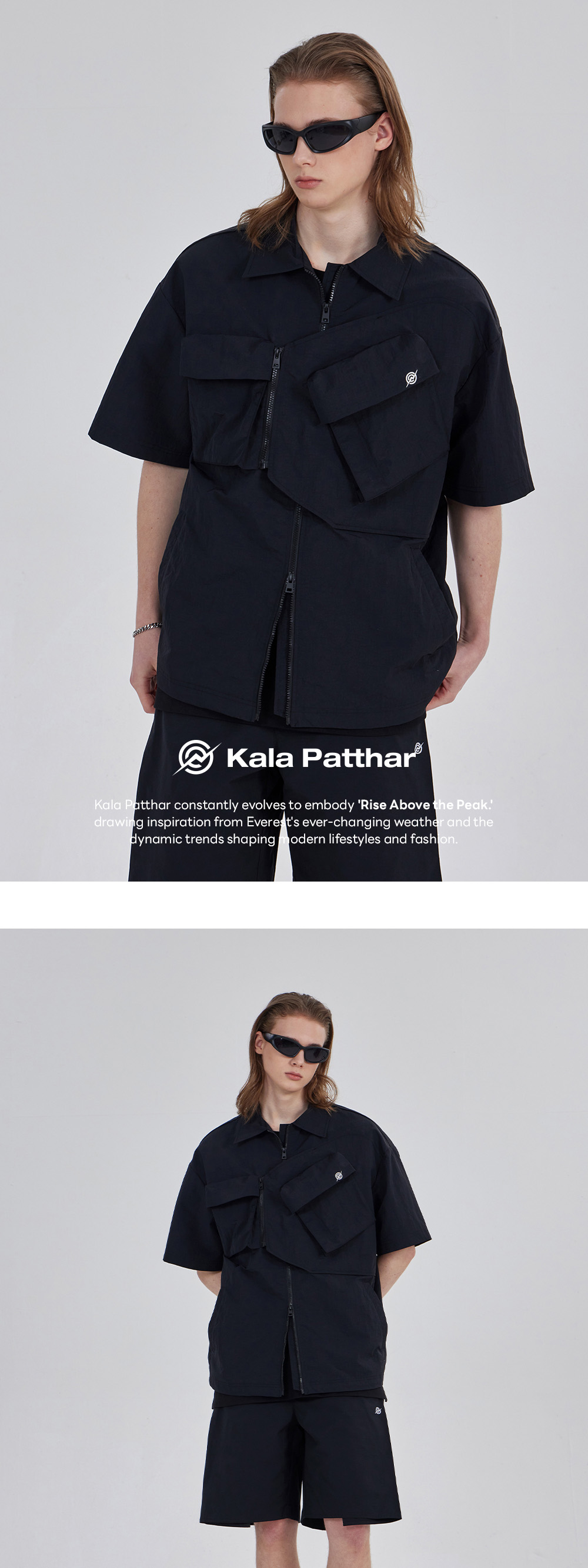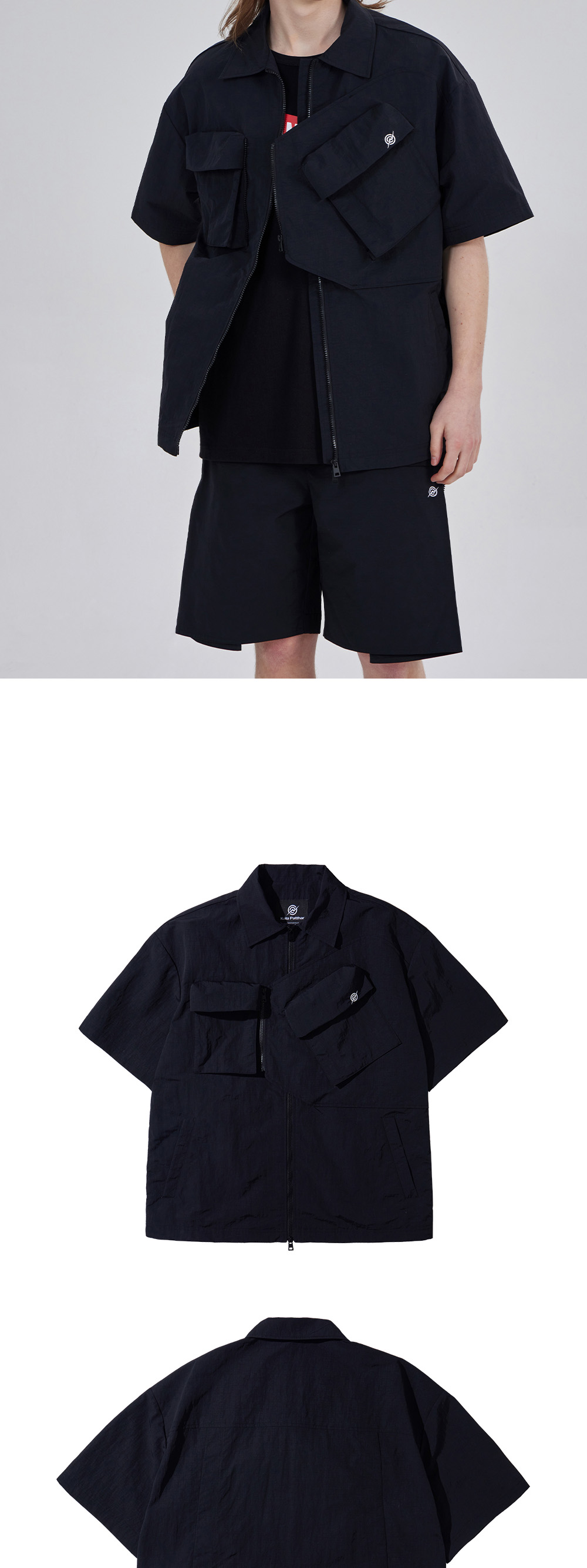 칼라파타르 나일론 타슬란 오프셋 집 포켓 하프 셔츠 블랙