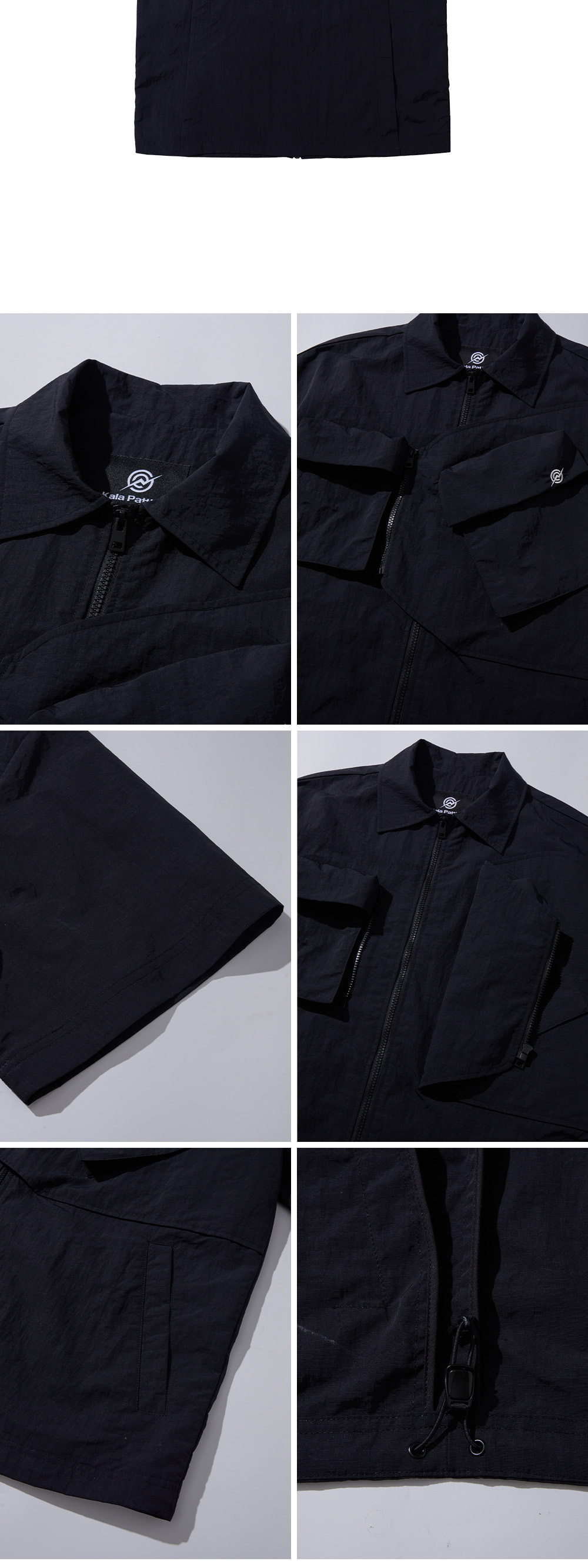 KALA PATTHAR Nylon Taslan Offset Zip Pocket Half Shirts Black