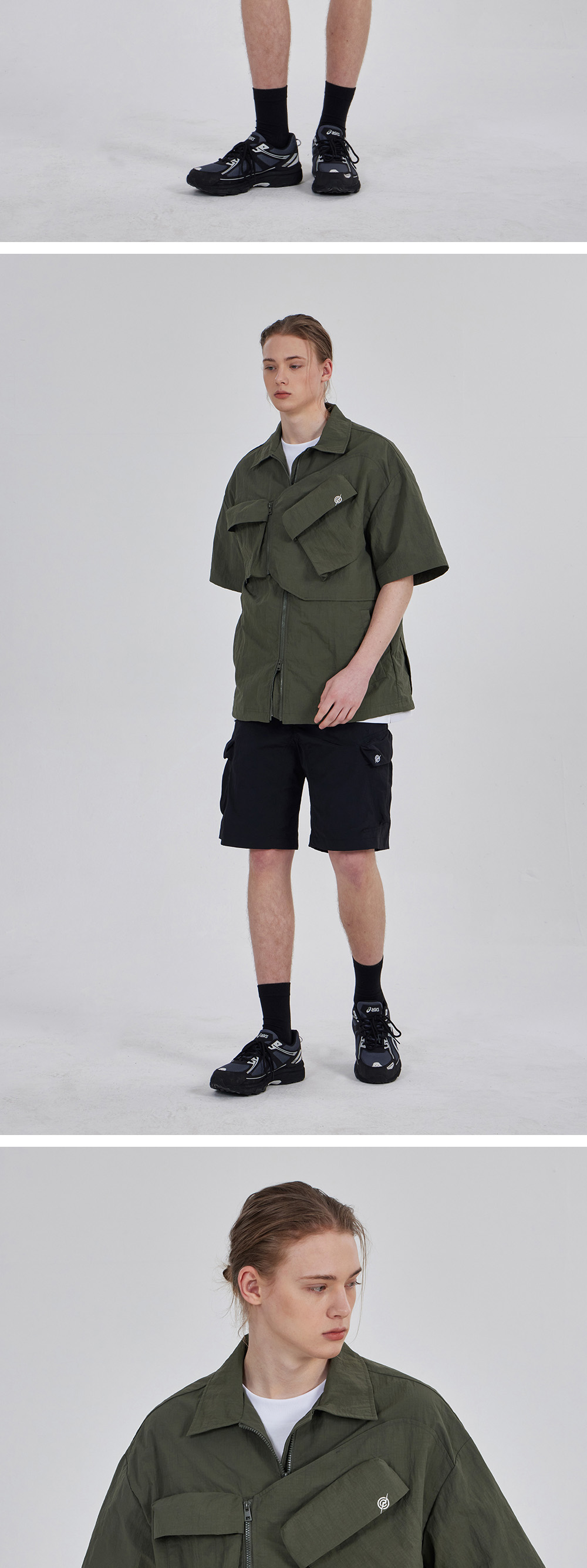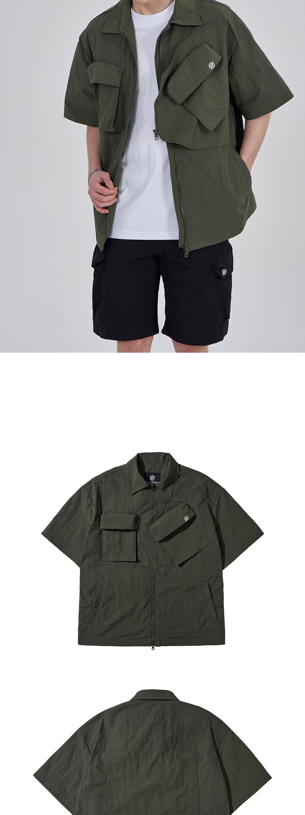 칼라파타르 나일론 타슬란 오프셋 집 포켓 하프 셔츠 카키