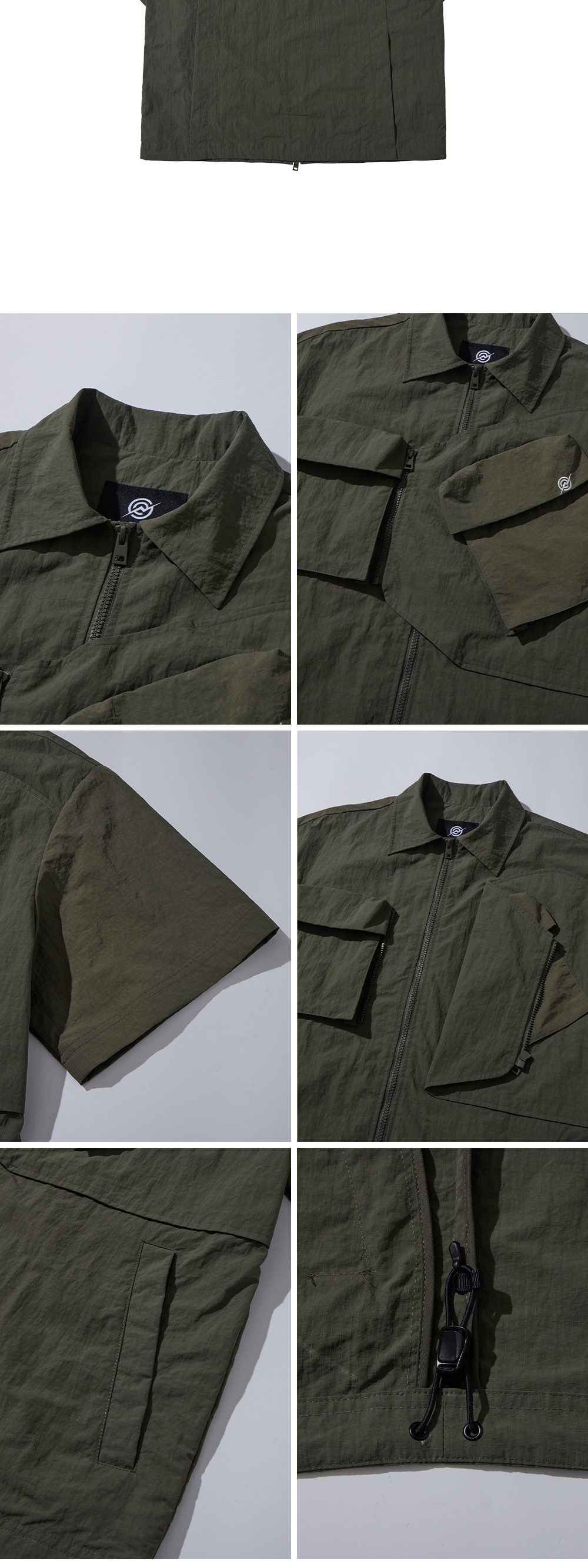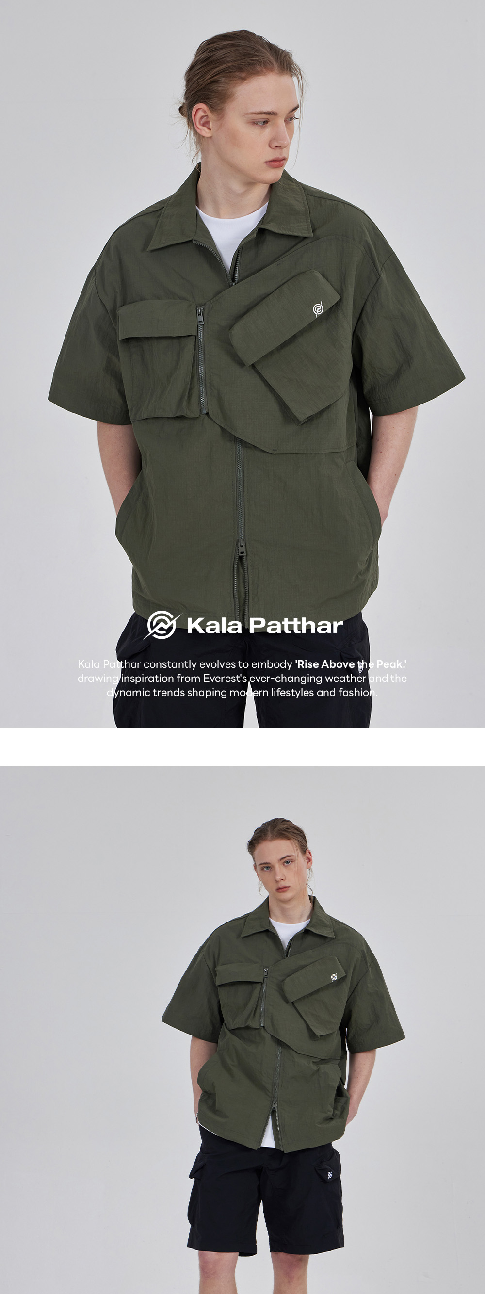 KALA PATTHAR Nylon Taslan Offset Zip Pocket Half Shirts Khaki