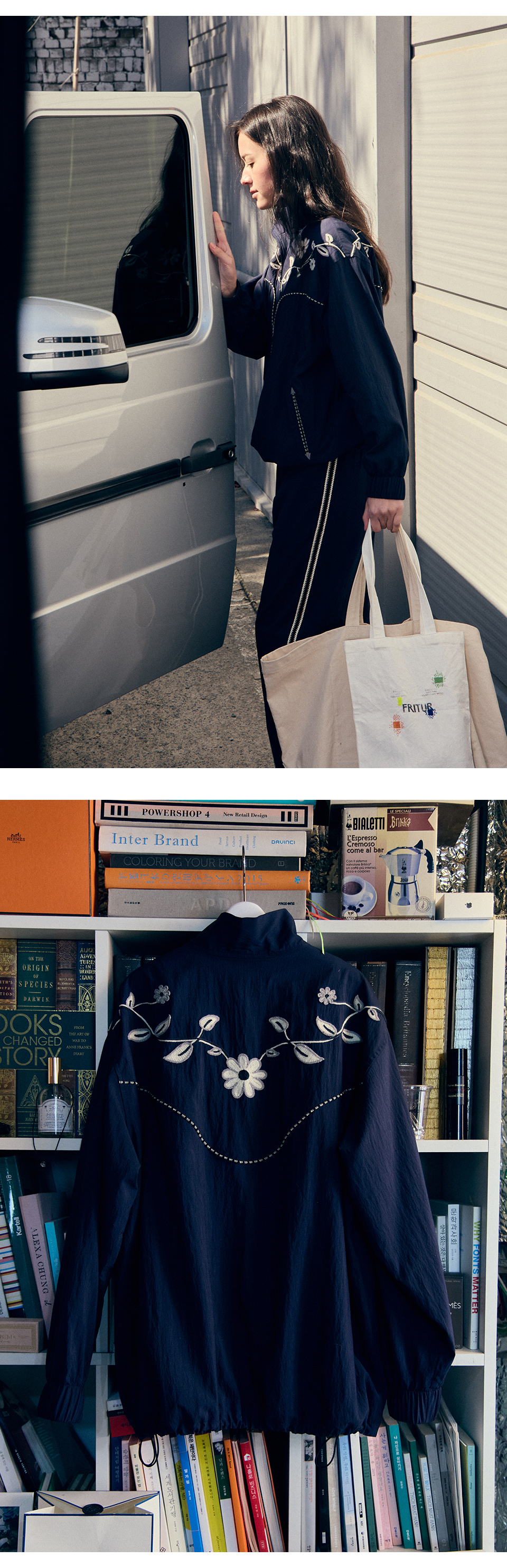 Fritur Embroidery Western Windbreaker Navy_F251JK06