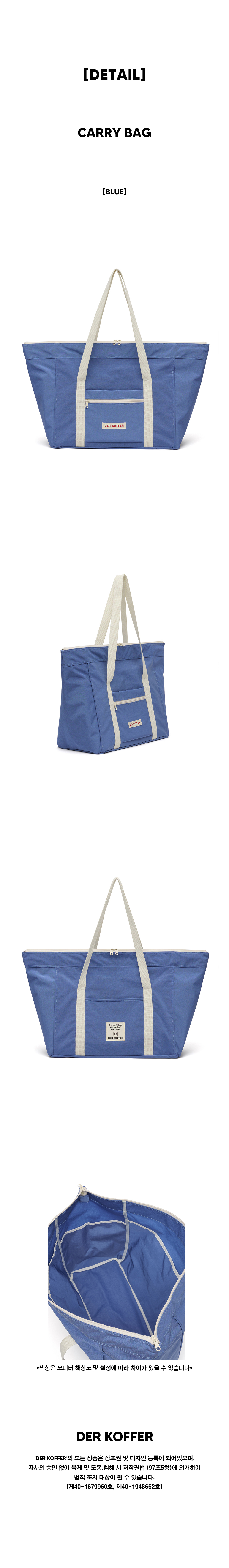 DER KOFFER의 새로운 빅백 'CARRY BAG' 을 소개합니다. 넉넉한 수납공간과 실용성을 갖춘 다적 가방 입니다. 여행, 캠핑, 육아 등 다양한 상황에서의 필요를 완벽히 충족시켜 줍니다. 고밀도 나일론 소재로 제작되어 가볍지만 내구성이 뛰어나며, 워셔블 코팅으로 생활방수 가능 합니다. 4면의 내부 주머니 구조로 소지품을 깔끔하게 정리하고 물건을 쉽게 찾을 수 있어 편리함을 제공합니다.