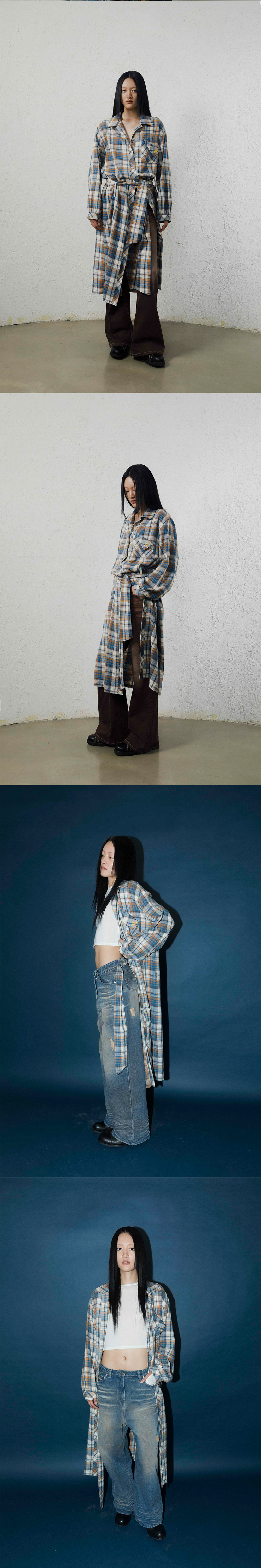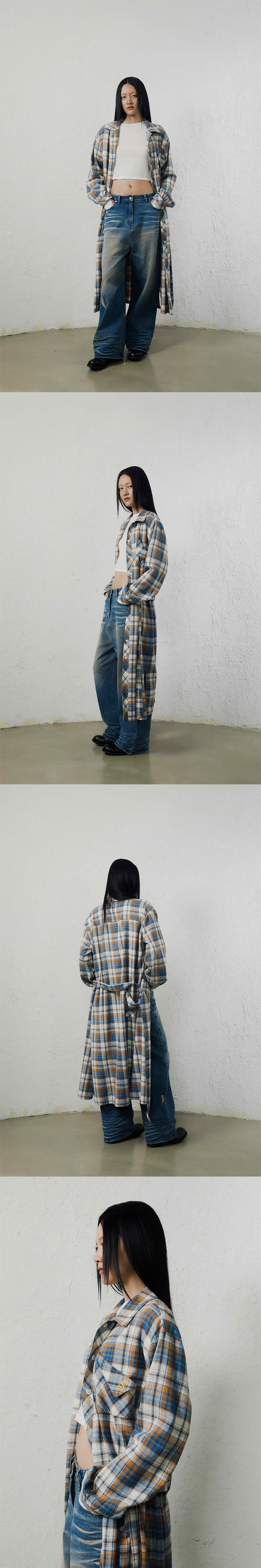 COTTON 100% 총장 130cm, 어깨 53.5cm, 가슴 59cm, 소매 59.5cm, 밑단 65cm * 상세 사이즈는 단면 기준이며, 측정 방법과 위치에 따라 1~3cm 오차 범위가 생길 수 있습니다. * 모델(희원 177cm) 피팅 사이즈 / 2사이즈 체크 셔츠 드레스 벨트 앞, 뒤 포켓 로고 자수 포인트 사이드 슬릿 버튼 클로징