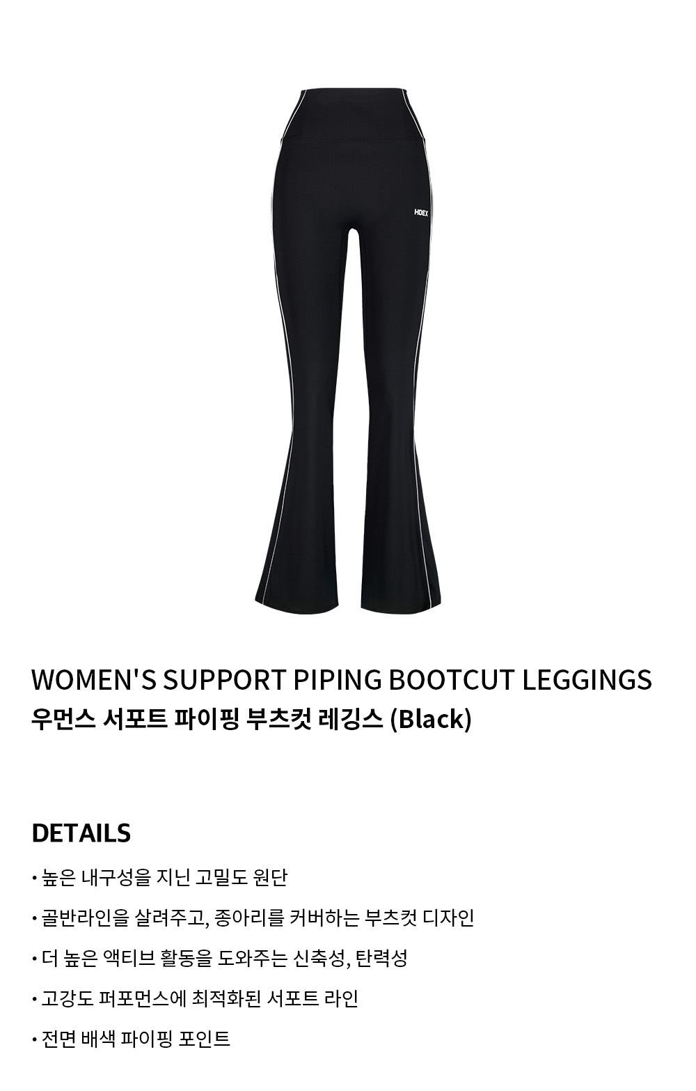 에이치덱스 우먼스 서포트 파이핑 부츠컷 레깅스 블랙