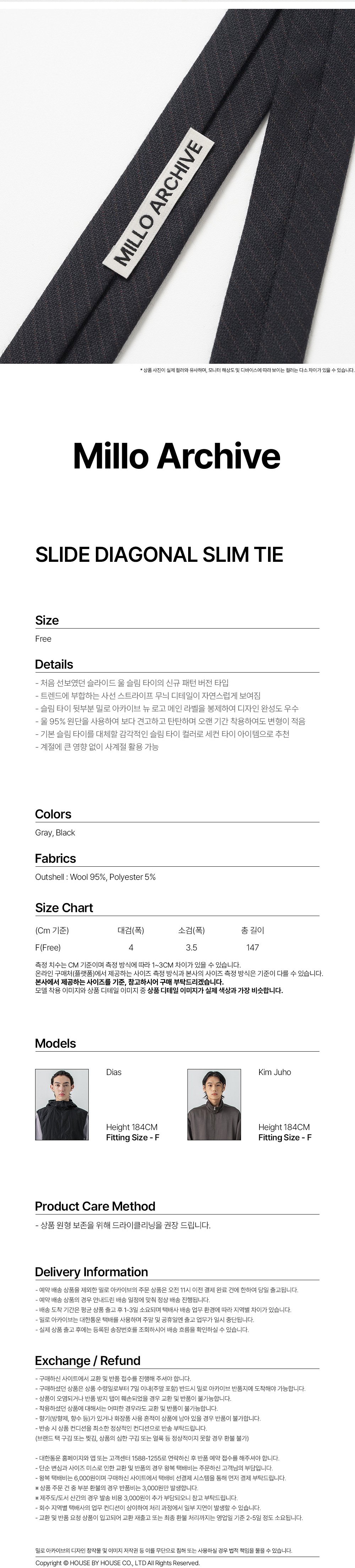 밀로 아카이브 슬라이드 다이애그널 슬림 타이 블랙
