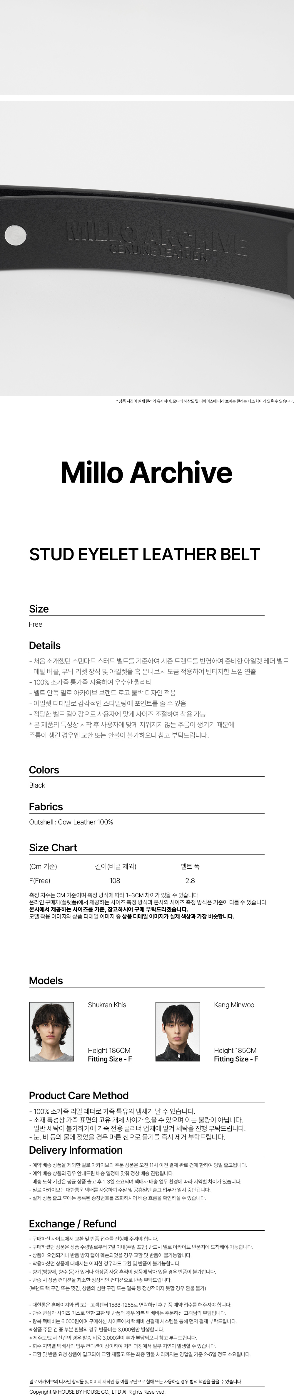 밀로 아카이브 스터드 아일렛 레더 벨트 블랙