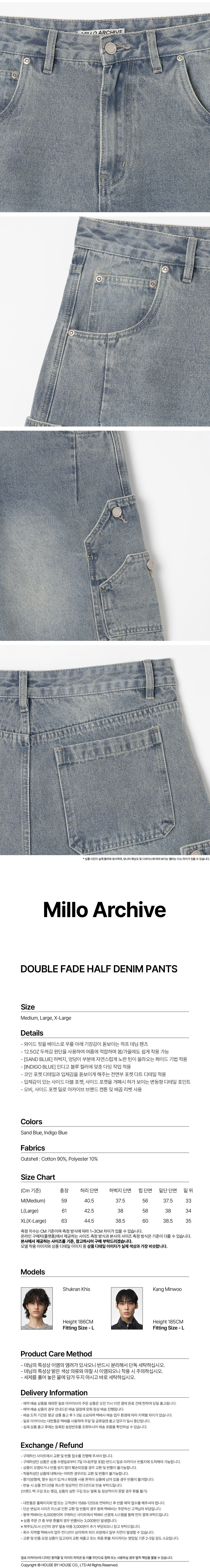 밀로 아카이브 더블 페이드 하프 데님 팬츠 샌드 블루