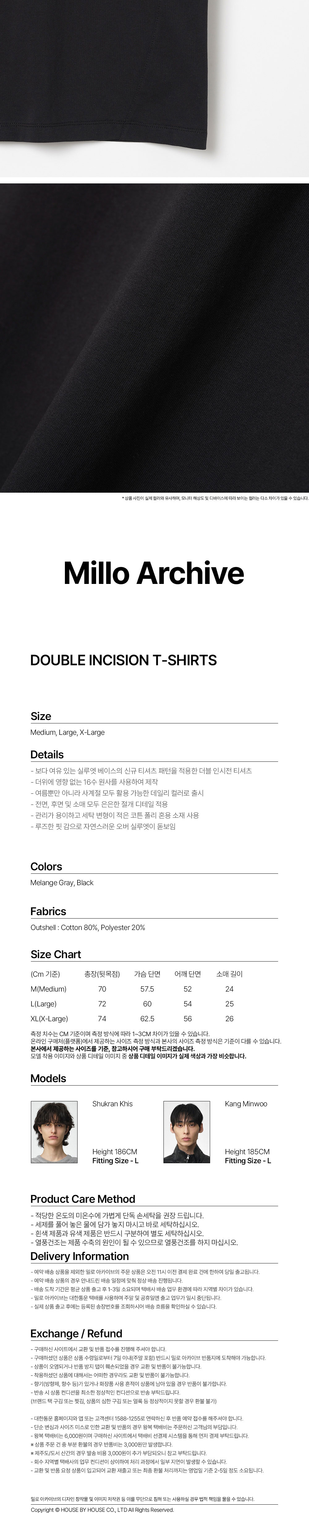 밀로 아카이브 더블 인시전 티셔츠 블랙