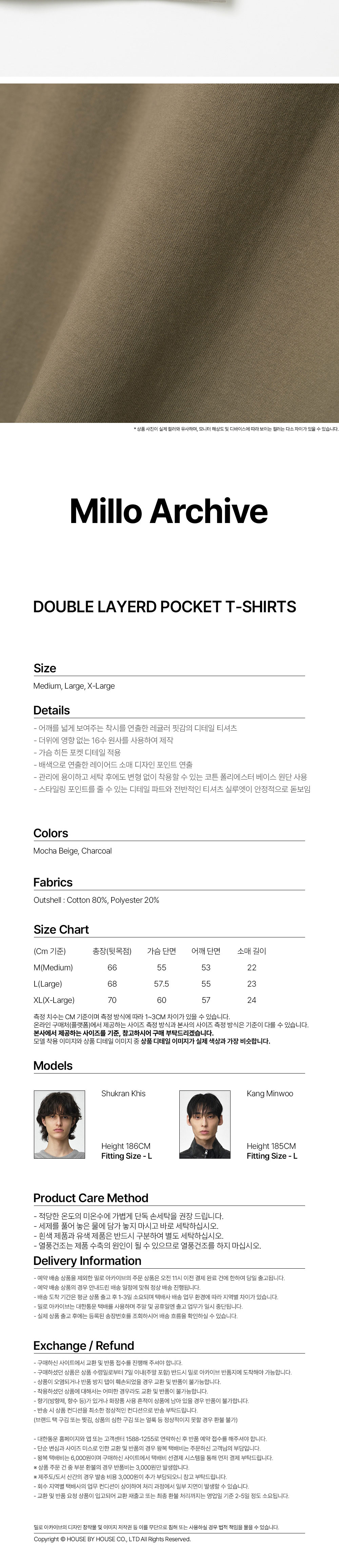 밀로 아카이브 더블 레이어드 포켓 티셔츠 모카 베이지