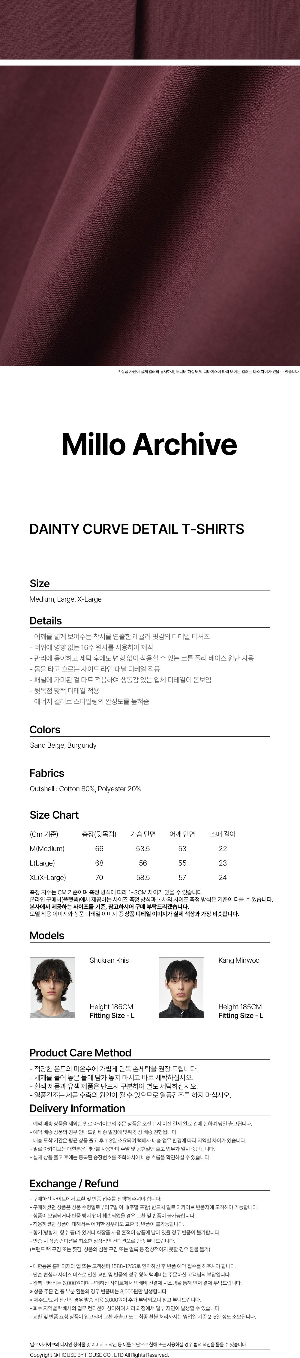 밀로 아카이브 데인티 커브 디테일 티셔츠 버건디