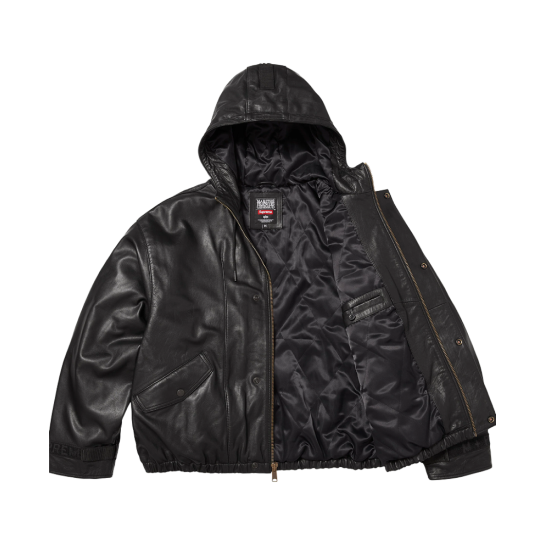 Supreme x Marithe Francois Girbaud Hooded Leather Flight Bomber Jacket Black - 25SS