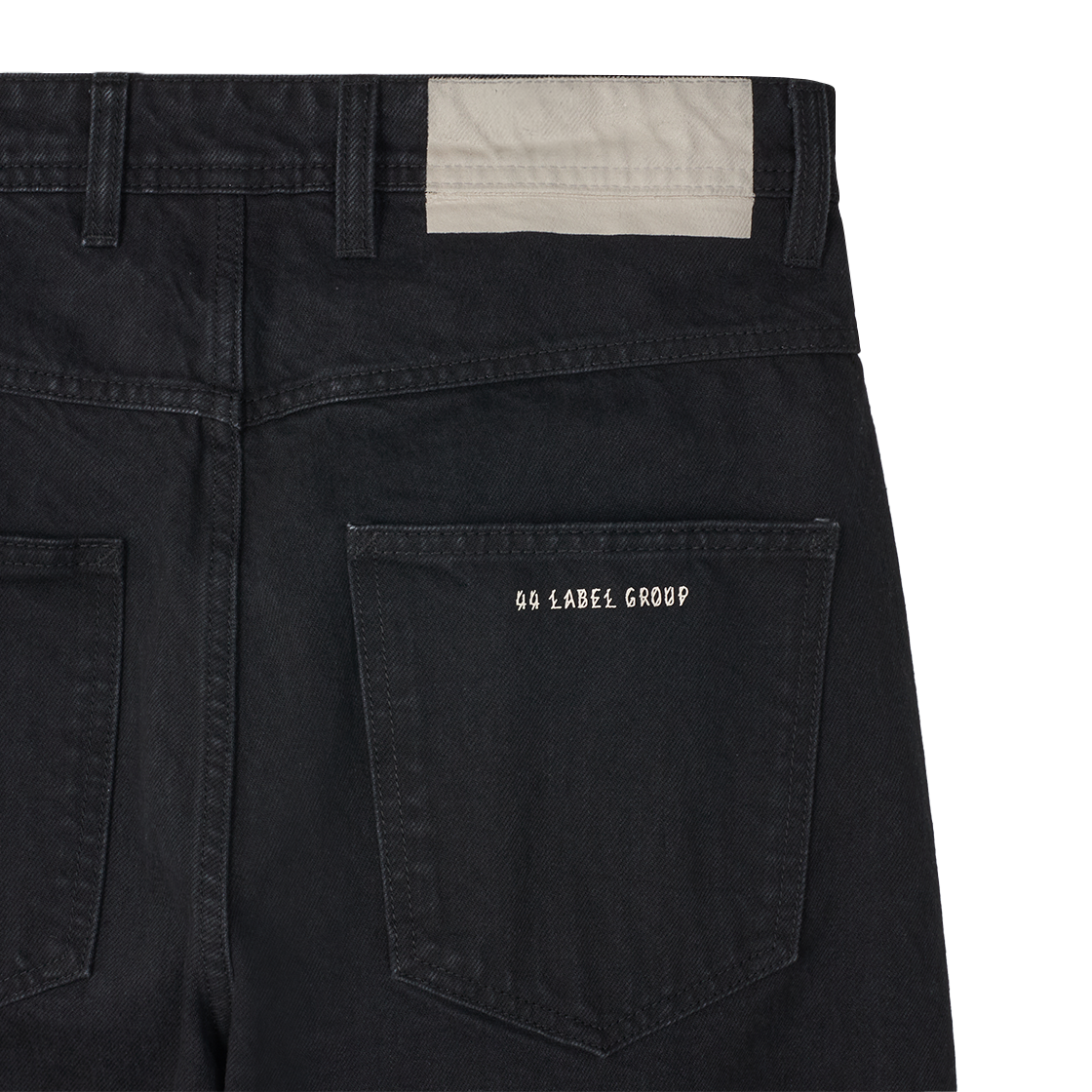 숨은 디테일과 핏이 매력적인 44 레이블 그룹의 파파스 팬츠 랜야드 블랙 데님 블랙입니다. - 유니섹스 디자인 - marmorized treatment in 100% cotton - 힙 포켓 및 후면 로고 디테일