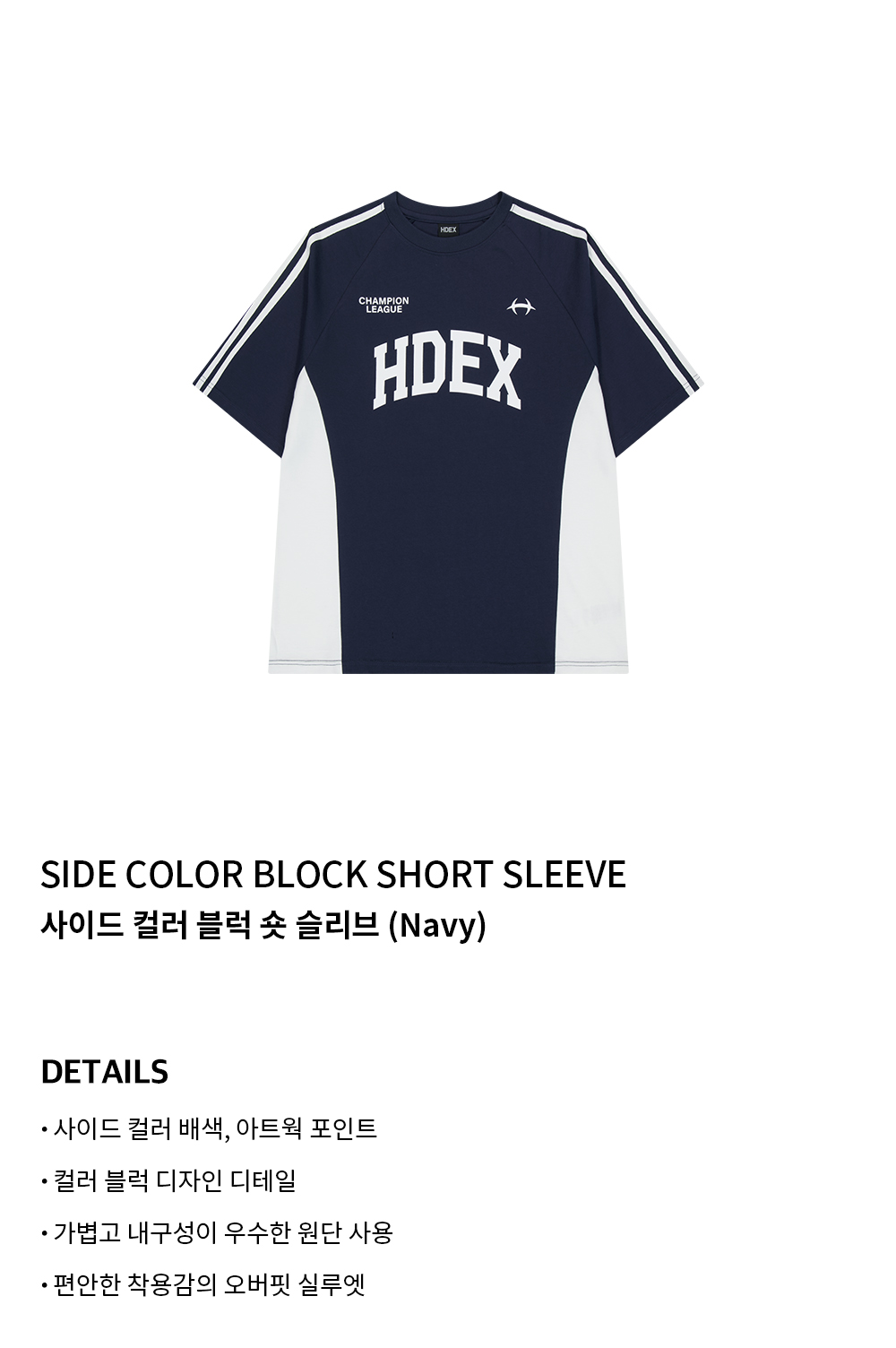 에이치덱스 사이드 컬러 블럭 숏 슬리브 네이비
