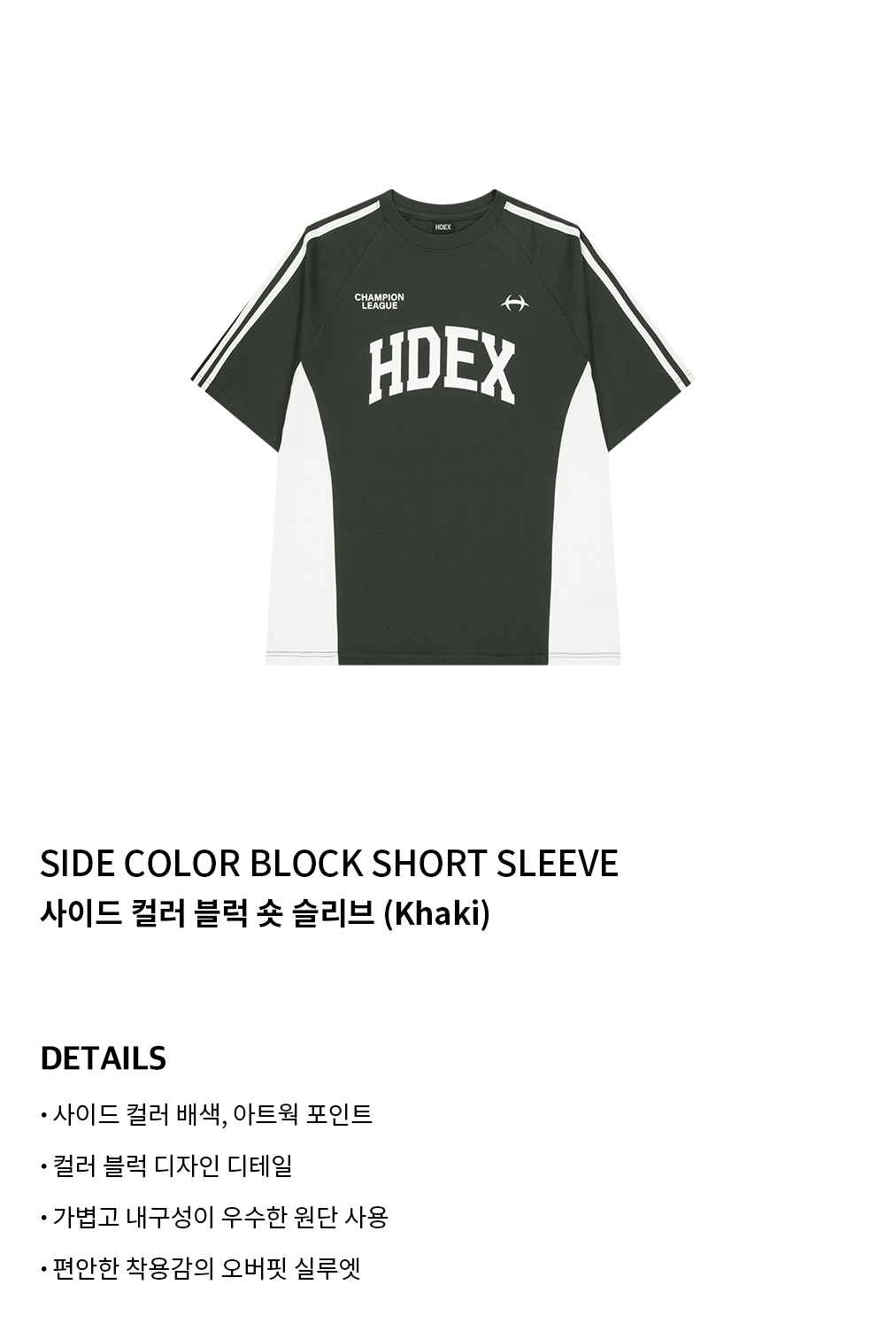 에이치덱스 사이드 컬러 블럭 숏 슬리브 카키