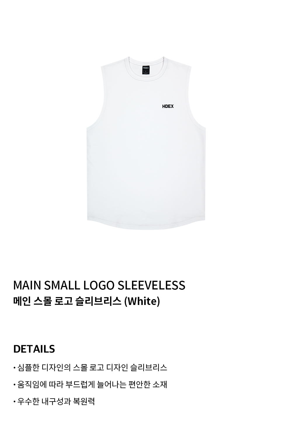 에이치덱스 메인 스몰 로고 슬리브리스 화이트