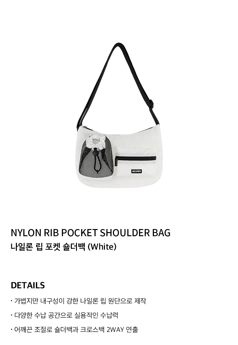 에이치덱스 나일론 립 포켓 숄더백 화이트