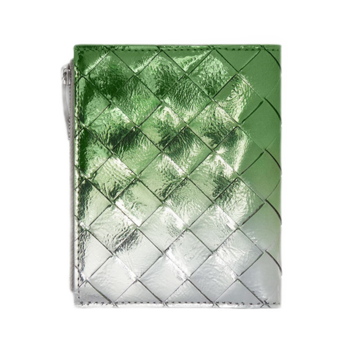 Bottega Veneta Intrecciato Small Bi-Fold Wallet Silver Fresh Mint