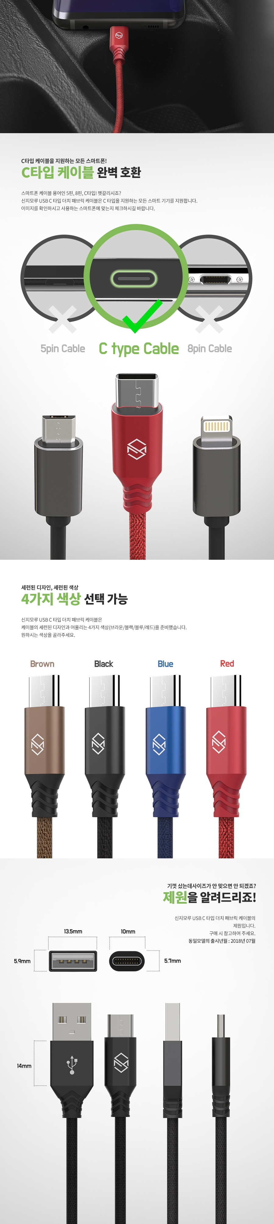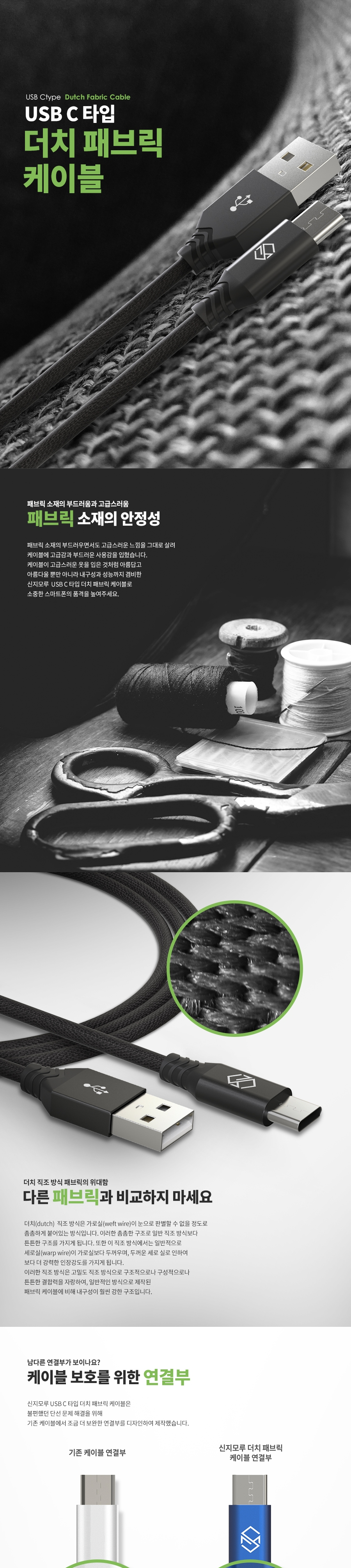 신지모루 더치 패브릭 고속 USB-A to C 타입 충전 케이블 1M