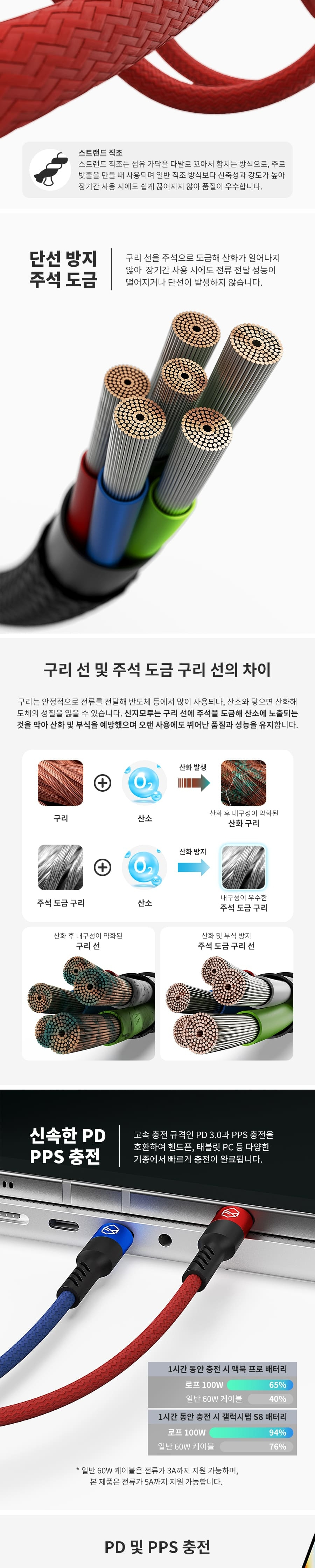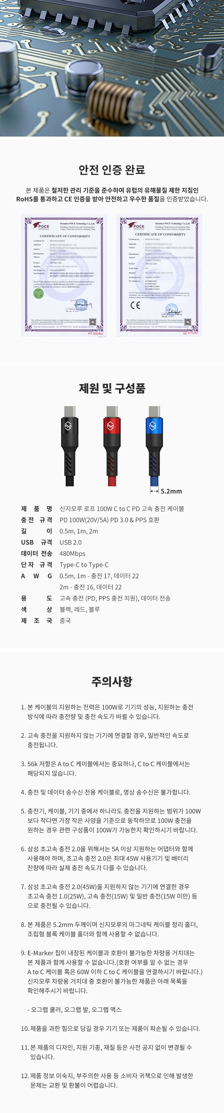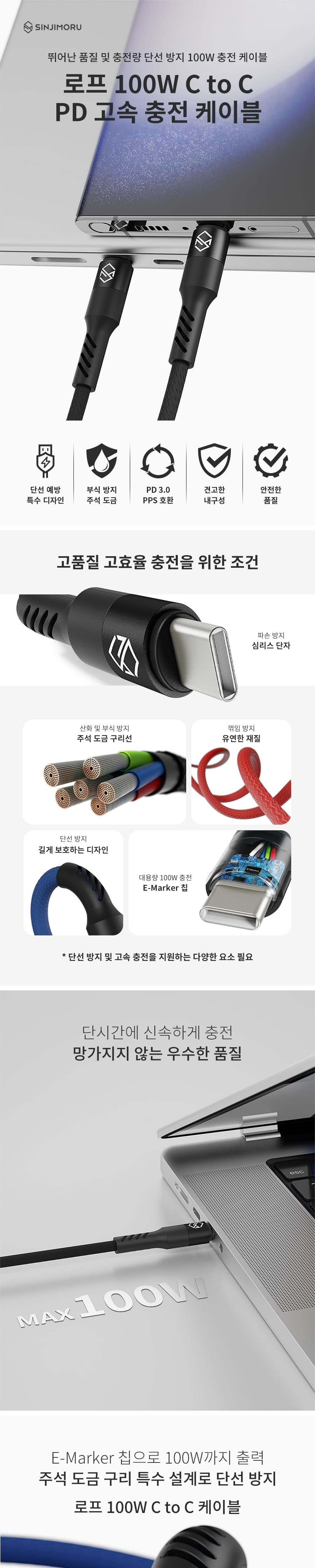 신지모루 로프 100W 초고속 C to C 충전 케이블 2M