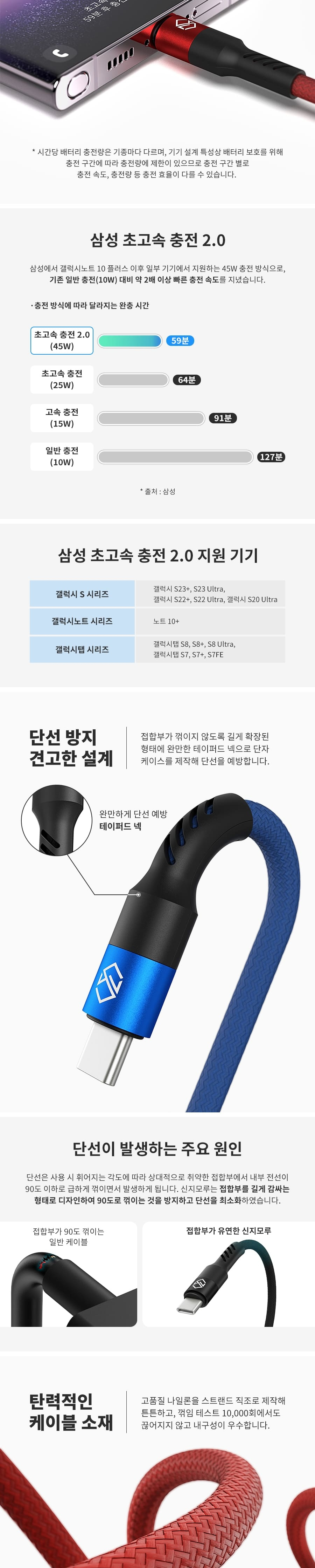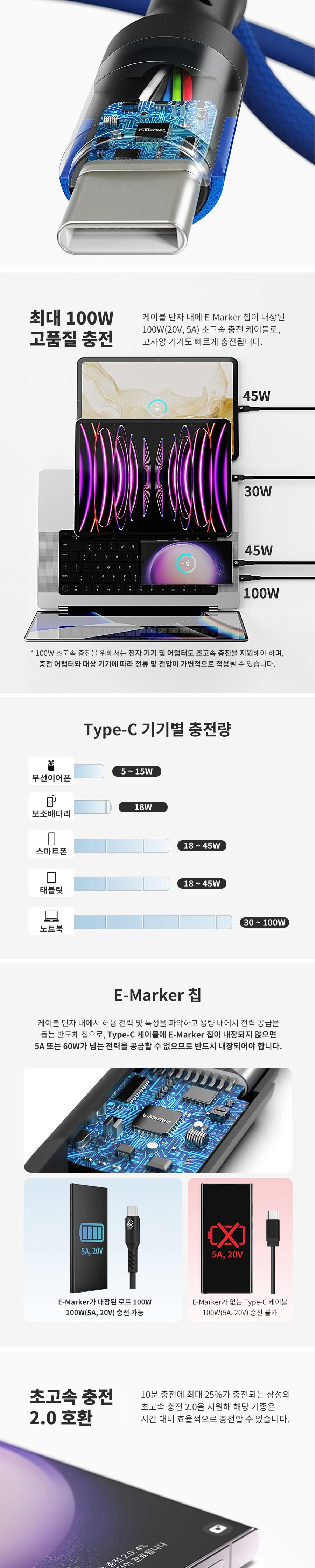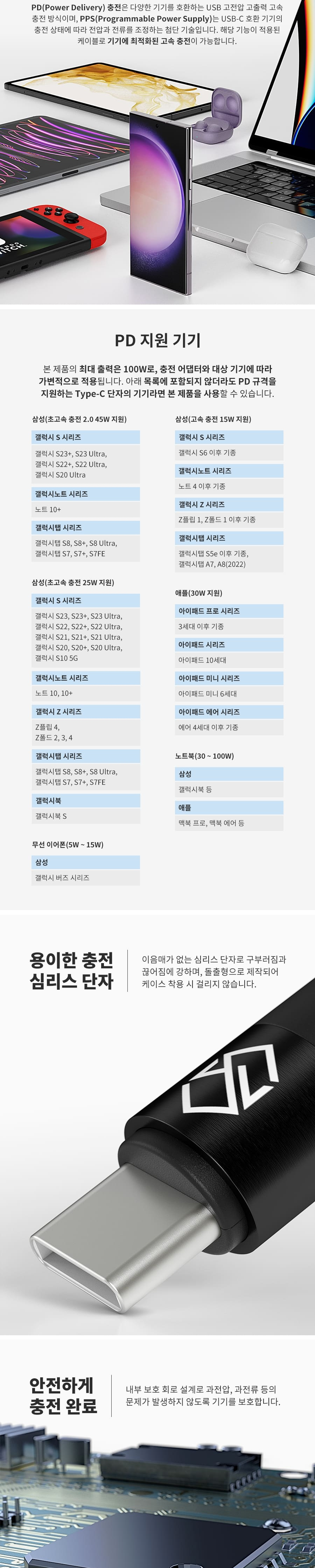 신지모루 로프 100W 초고속 C to C 충전 케이블 2M
