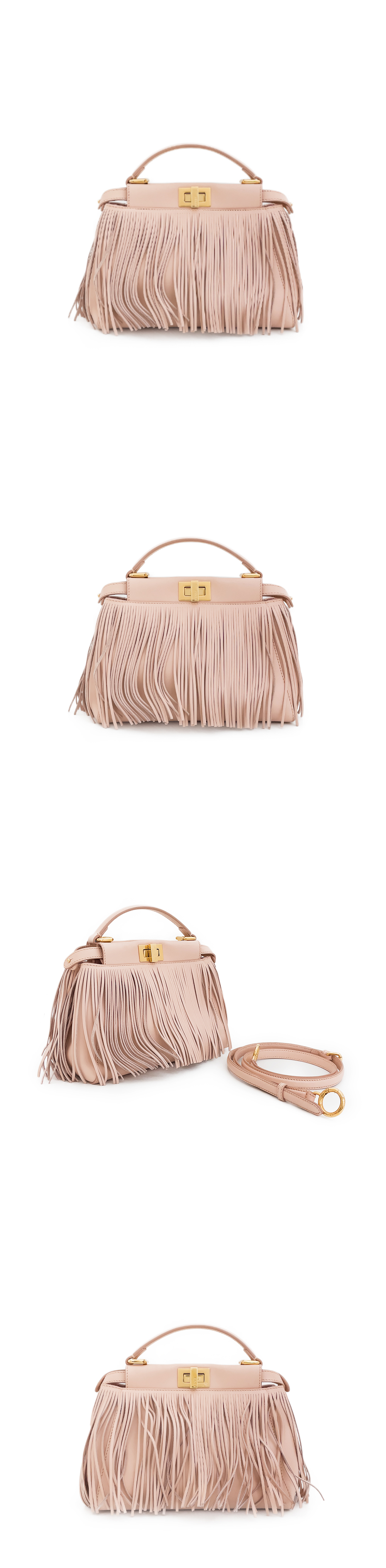 Fendi 21FW Peekaboo Iconic Fringe Mini Pink Gold