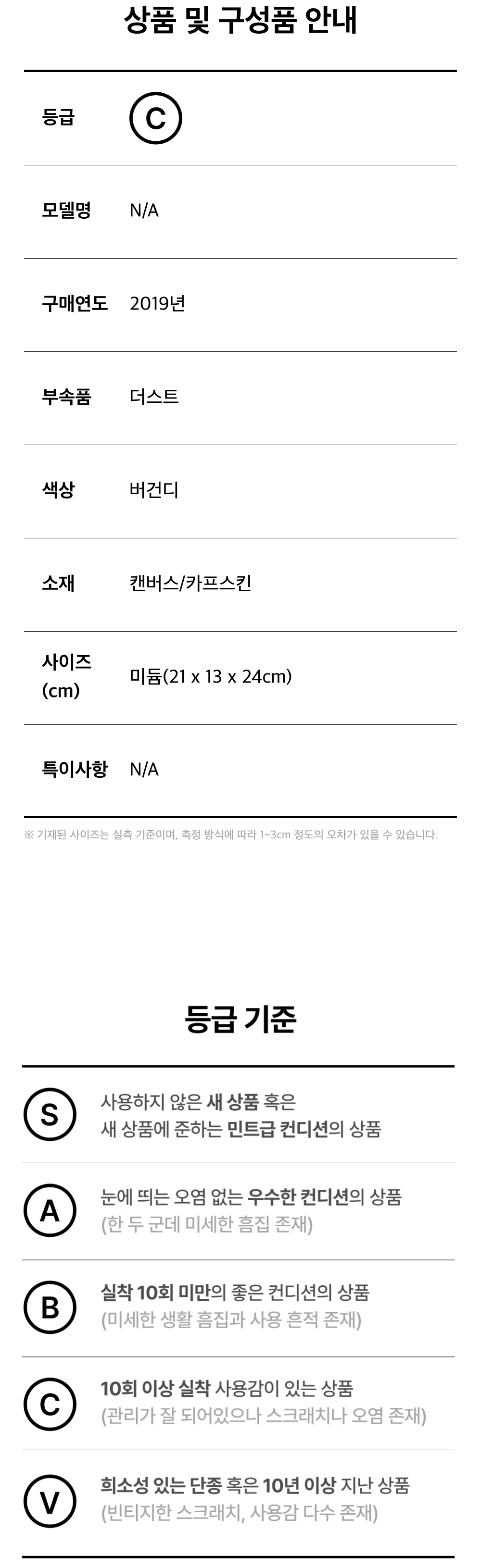 모든 상품(가죽, 의류, 잡화, 슈즈 등)은 사용자의 사용방법과 환경에 따라 변형, 변색이 될 수 있으니 반드시 취급 라벨에 표시된 관리 안내를 따르시길 권장 드립니다. 이는 정도의 차이가 있으며 과도한 체열과 땀, 습기, 빛, 마찰은 제품의 손상 및 변형을 일으킬 수 있으므로 주의하시길 바랍니다.
