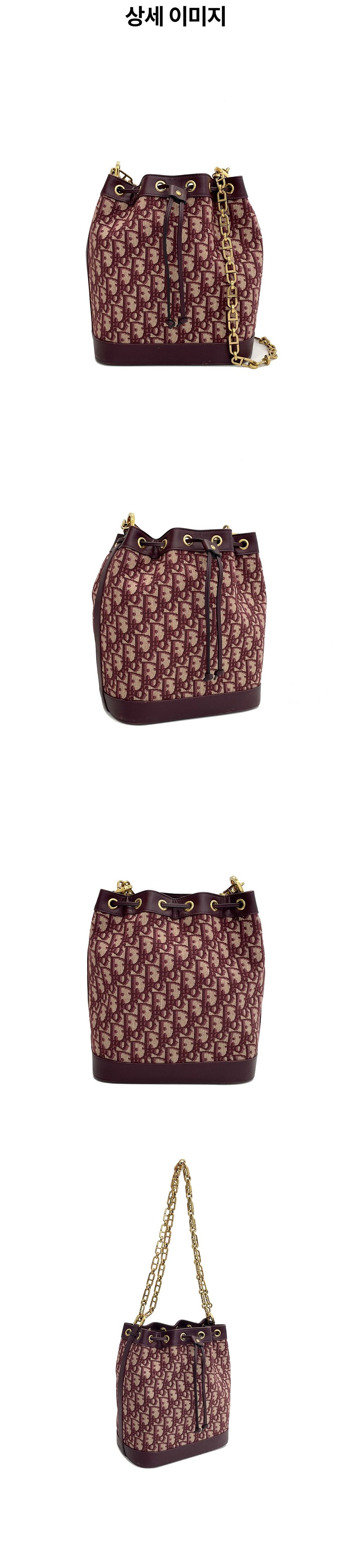 디올 오블리크 캔버스 버킷백 미듐 버건디 금장