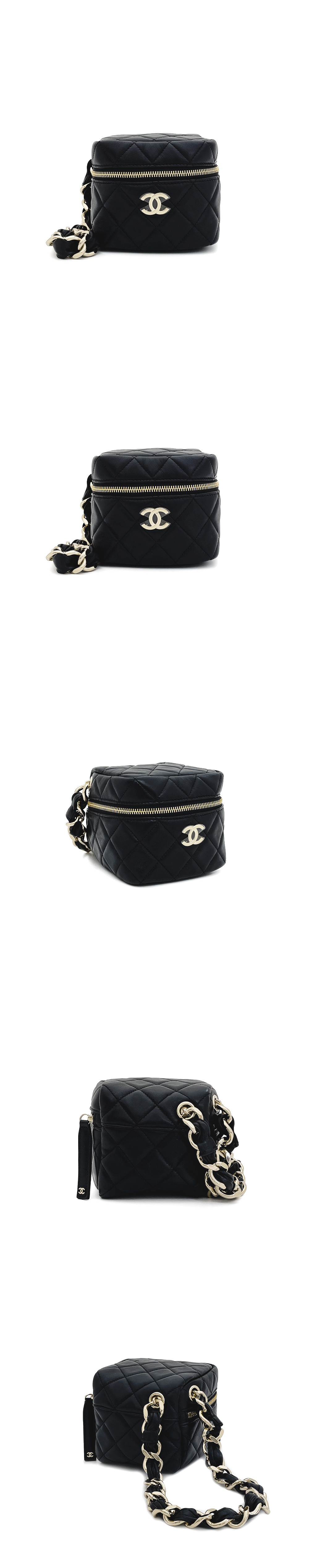 샤넬 CC로고 스퀘어 체인 베니티백 블랙 샴페인골드 램스킨