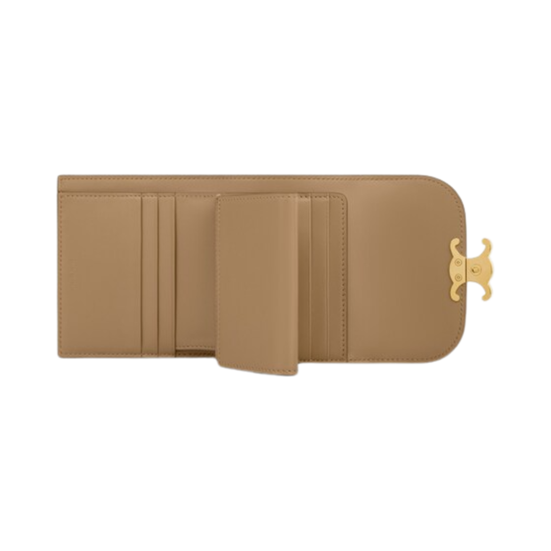 Celine Small Flap Wallet Triomphe in Shiny Calfskin Smoked Brown