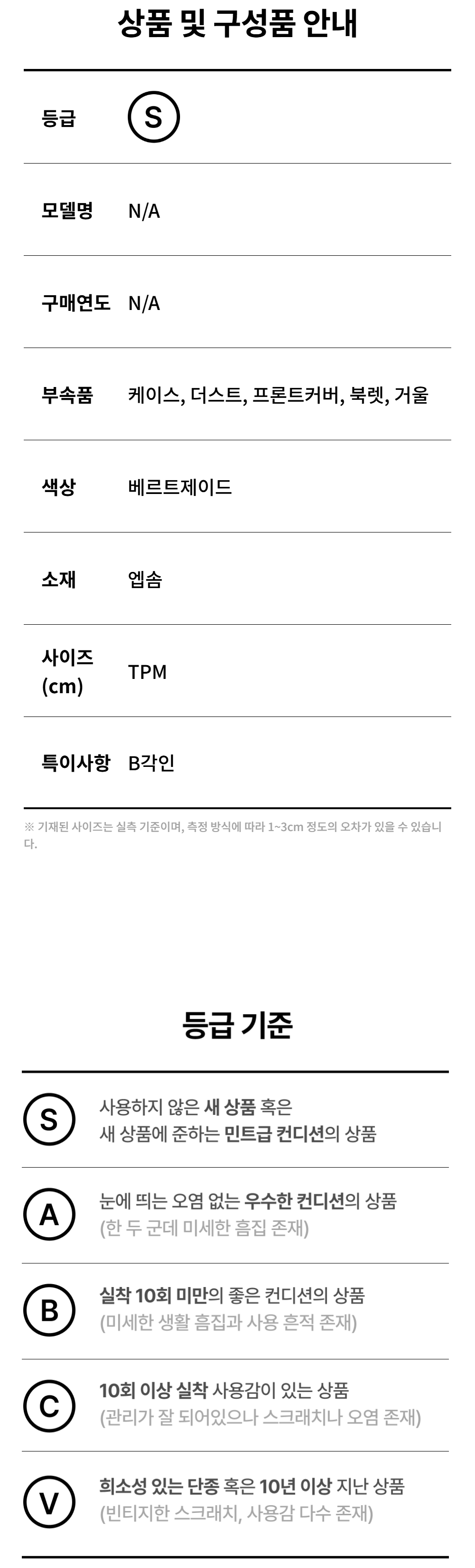 모든 상품(가죽, 의류, 잡화, 슈즈 등)은 사용자의 사용방법과 환경에 따라 변형, 변색이 될 수 있으니 반드시 취급 라벨에 표시된 관리 안내를 따르시길 권장 드립니다. 이는 정도의 차이가 있으며 과도한 체열과 땀, 습기, 빛, 마찰은 제품의 손상 및 변형을 일으킬 수 있으므로 주의하시길 바랍니다.